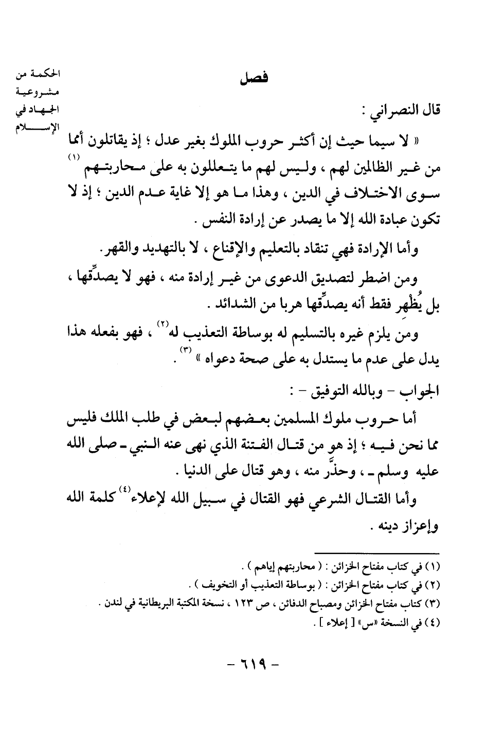 أما حروب ملوك المسلمين بعضهم لبعض في طلب الملك فليس مما نحن فيه، إذ هو من قتال الفتنة الذي نهى عنه النبي - صلى الله عليه وسلم - وحذر منه، وهو قتال على الدنيا.