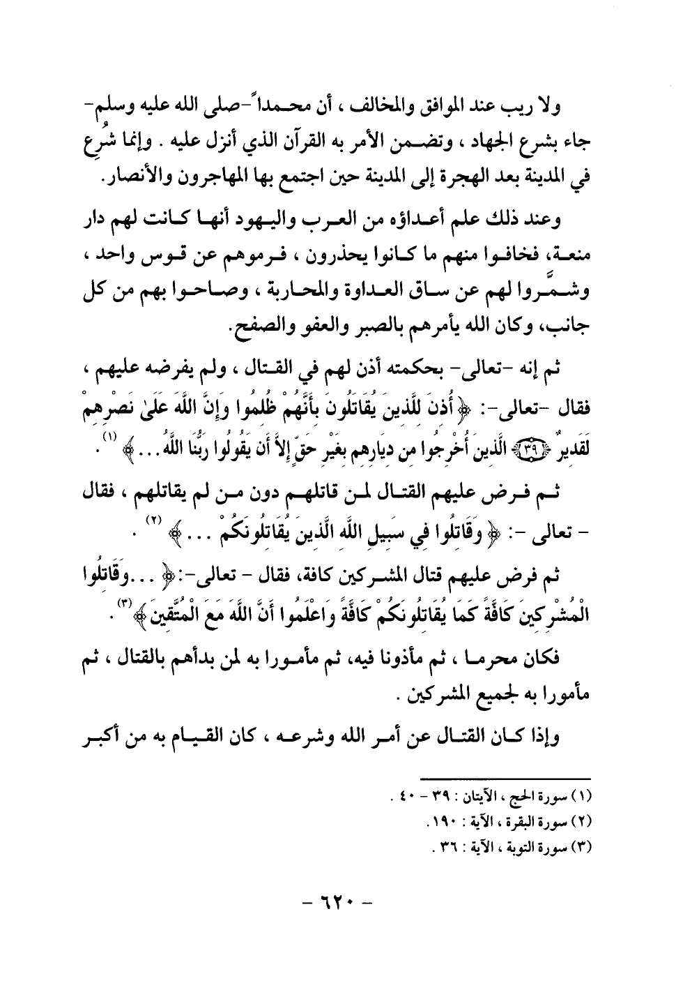 وإذ كان القتال عن أمر الله وشرعه، كان القيام به من أكبر