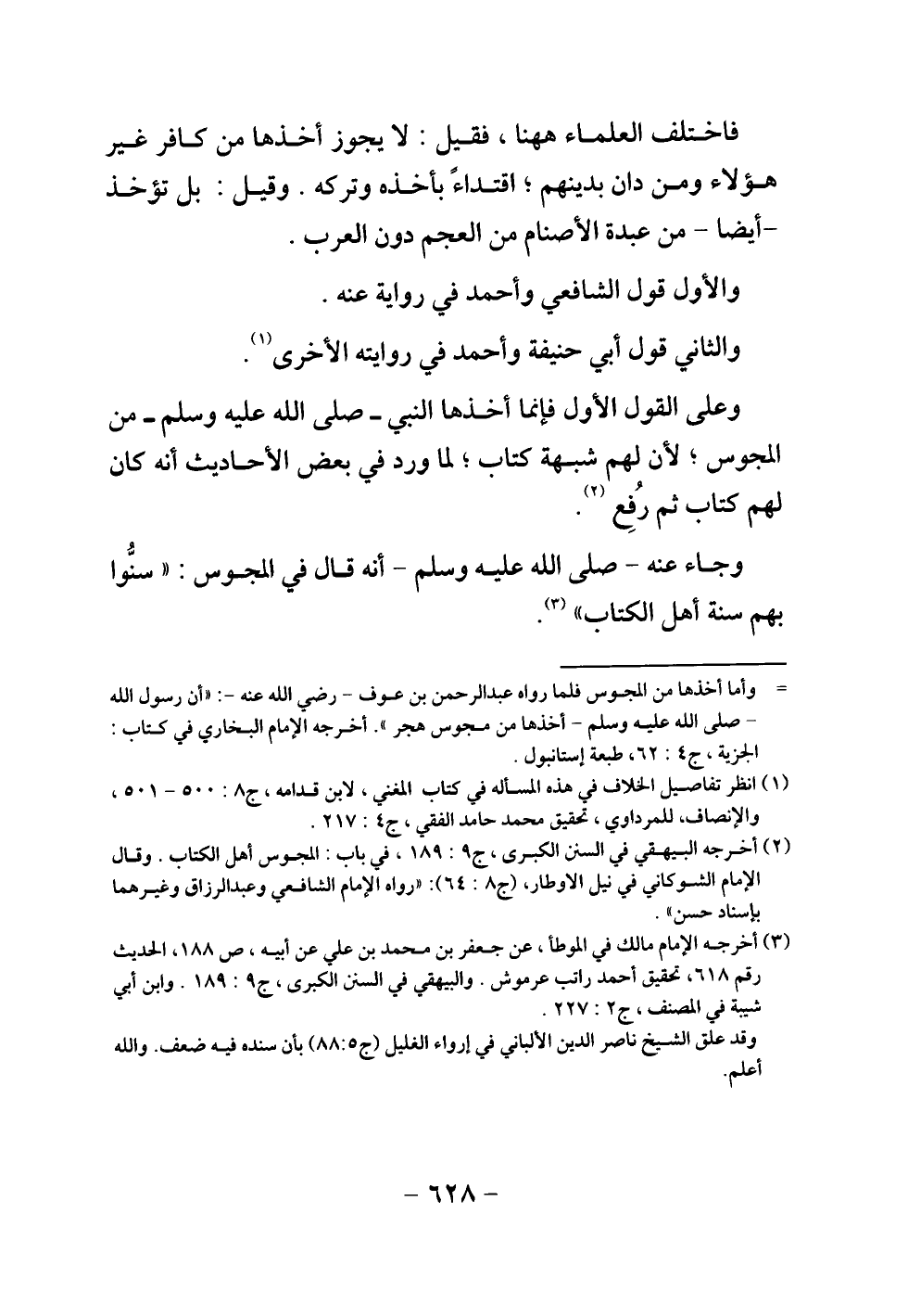 وعلى القول الأول فإنما أخذها النبي - صلى الله عليه وسلم - من المجوس، لأن لهم شبهة كتاب، لما ورد في بعض الأحاديث أنه كان لهم كتاب ثم رفع.
