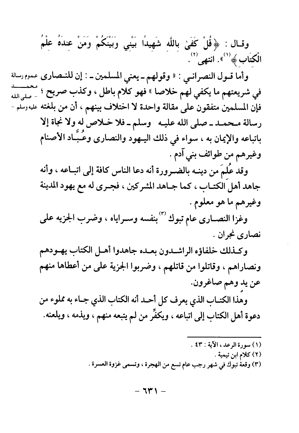 وقال: {قُلْ كَفَى بِاللَّهِ شَهِيدًا بَيْنِي وَبَيْنَكُمْ وَمَنْ عِنْدَهُ عِلْمُ الْكِتَابِ} . انتهى.