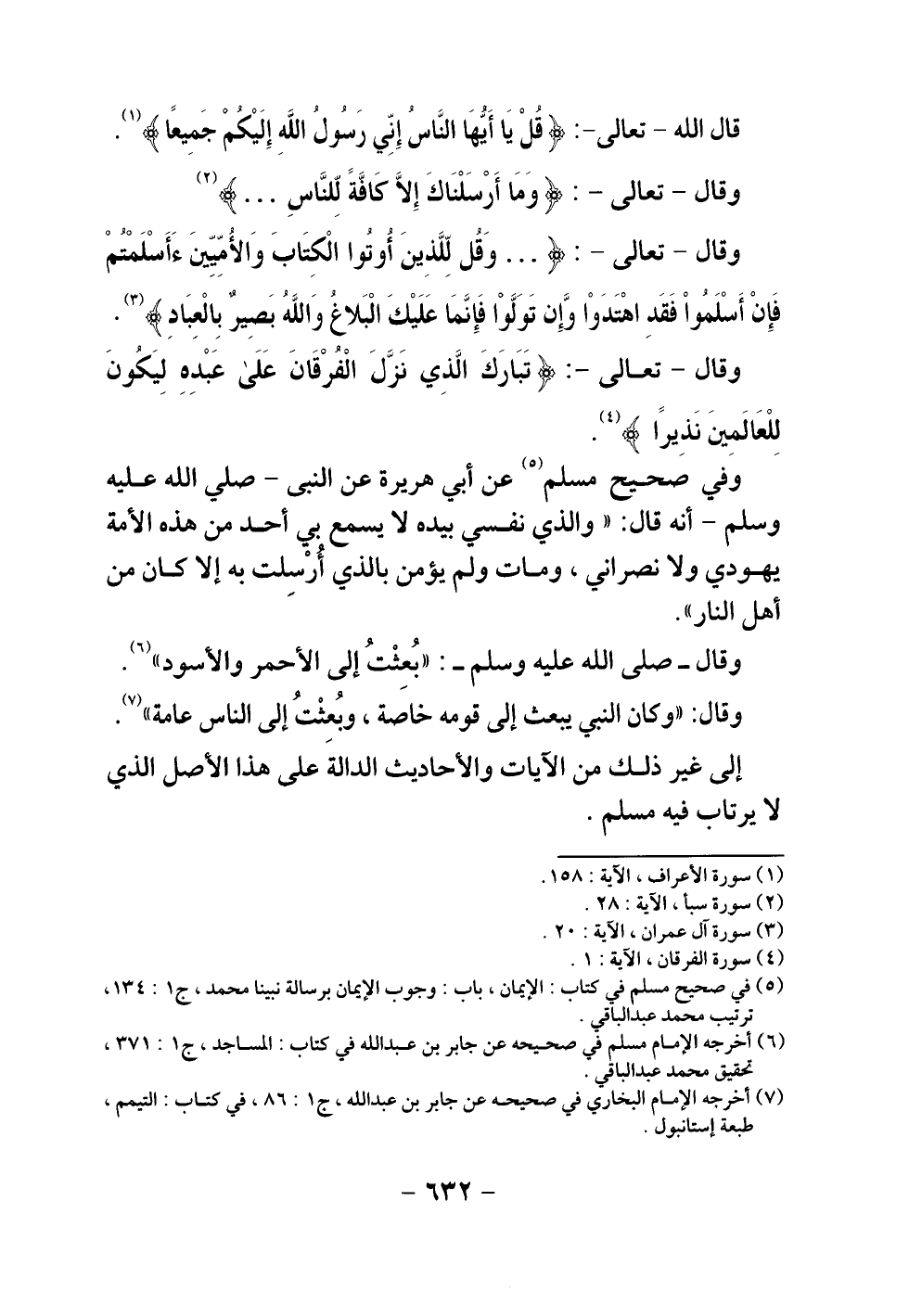 قال الله تعالى: {قُلْ يَا أَيُّهَا النَّاسُ إِنِّي رَسُولُ اللَّهِ إِلَيْكُمْ جَمِيعًا} .
