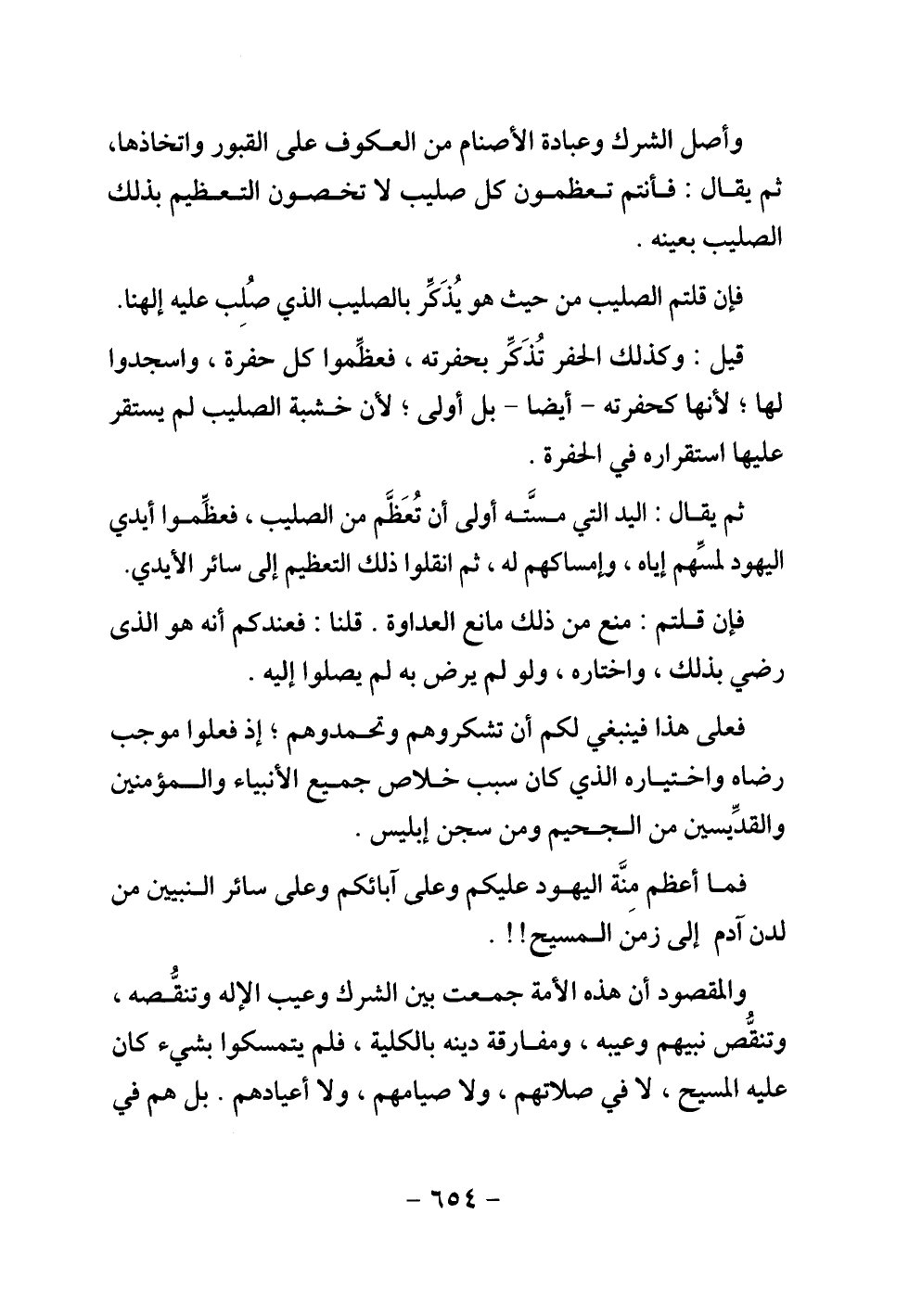 وأصل الشرك وعبادة الأصنام من العكوف على القبور واتخاذها، ثم يقال: فأنتم تعظمون كل صليب لا تخصون التعظيم بذلك الصليب بعينه.