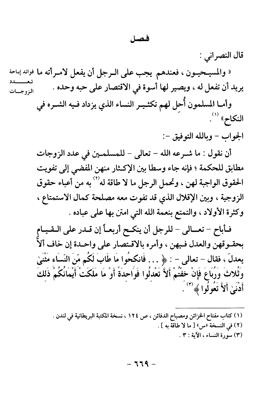 " والمسيحيون، فعندهم يجب على الرجل أن يفعل لامرأته ما يريد أن تفعل له، ويصير لها أسوة في الاقتصار على حبه وحده.