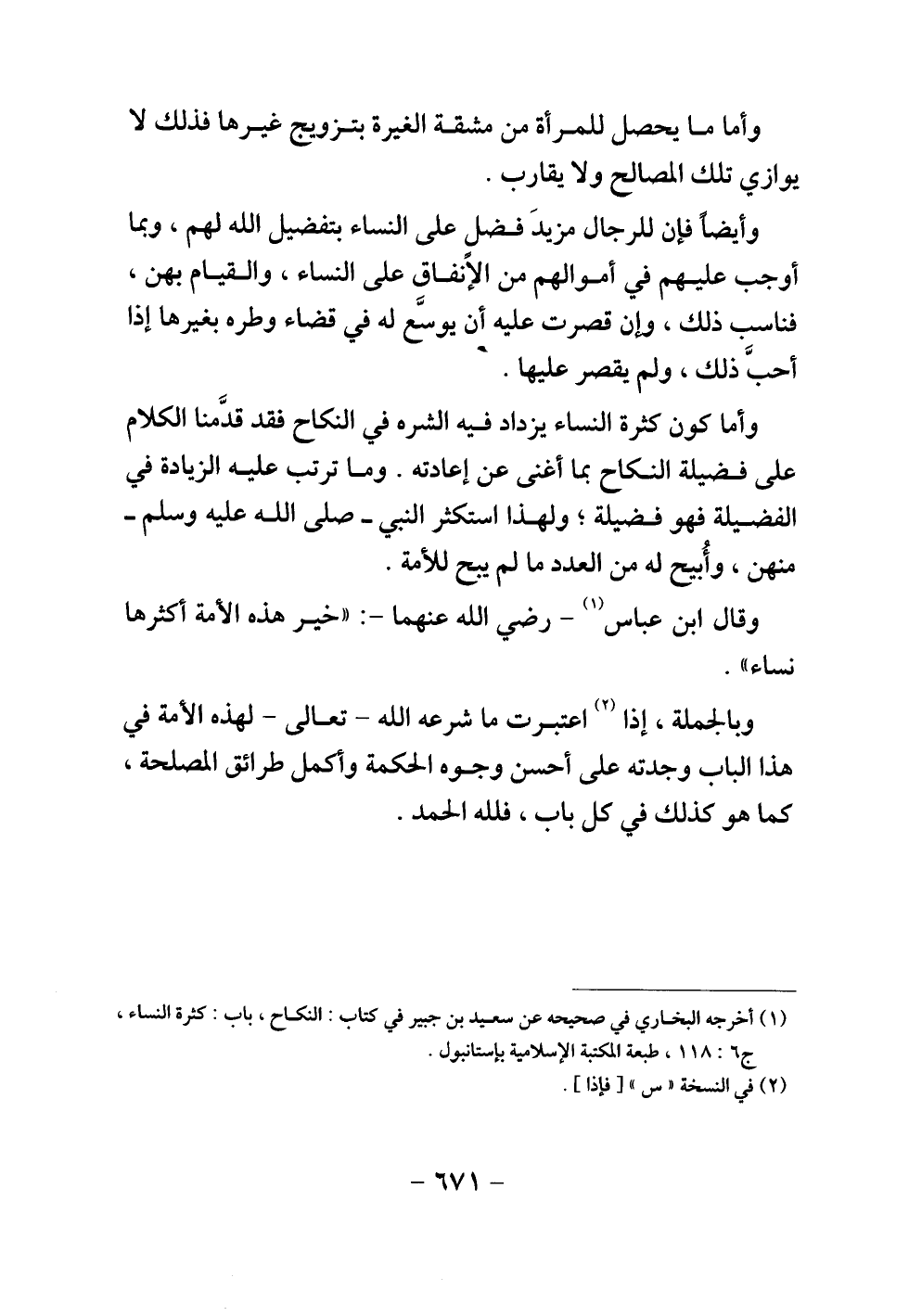 وقال ابن عباس - رضي الله عنهما -: " خير هذه الأمة أكثرها نساء ".