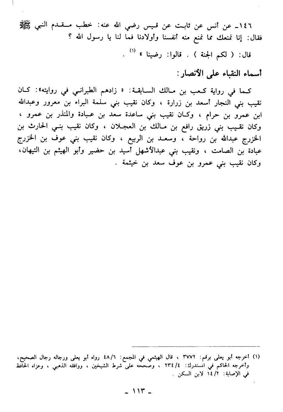 146 - عن أنس عن ثابت عن قيس رضي الله عنه: خطب مقدم النبي - صلى الله عليه وسلم - فقال: إنا نمنعك مما نمنع منه أنفسنا وأولادنا فما لنا يا رسول الله؟