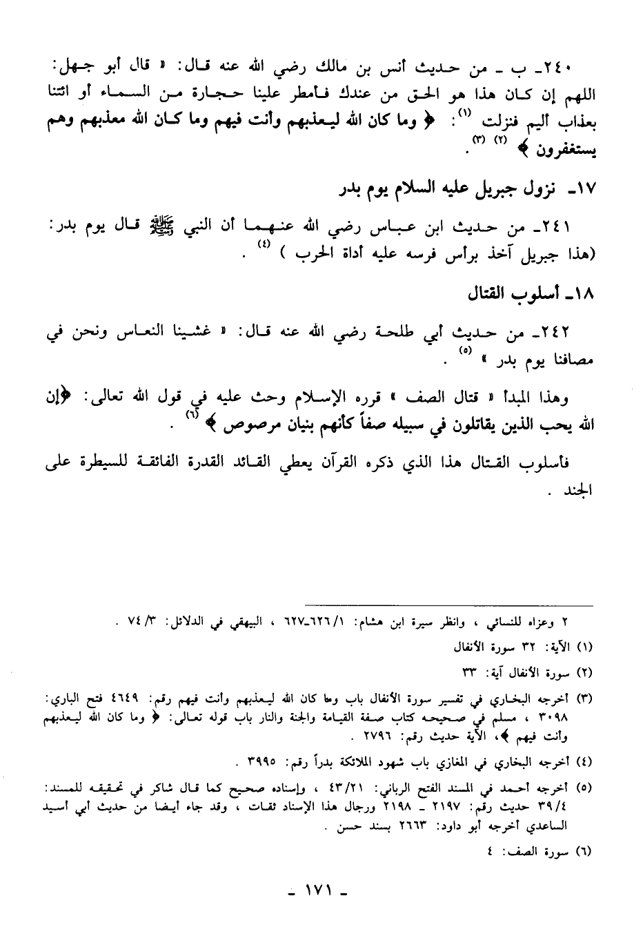 242 - من حديث أبي طلحة رضي الله عنه قال: "غشينا النعاس ونحن في مصافنا يوم بدر" (¬5).