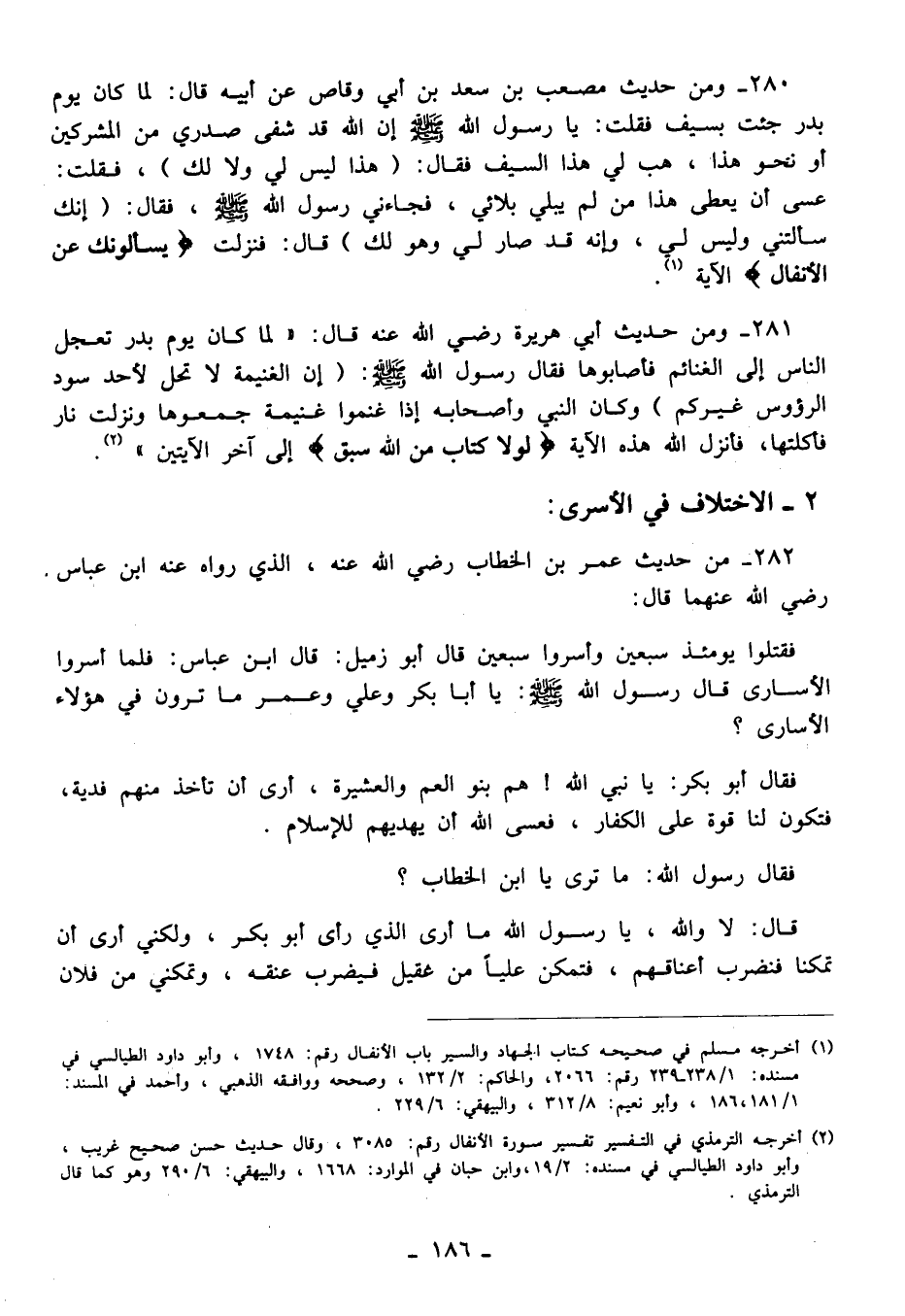 (¬2) أخرجه الترمذي في التفسير تفسير سورة الأنفال رقم: 3085، وقال حديث حسن صحيح غريب، وأبو داود الطيالسي في مسنده: 2/ 19، وابن حبان في الموارد:1668، والبيهقي: 6/ 290 وهو كما قال الترمذي.