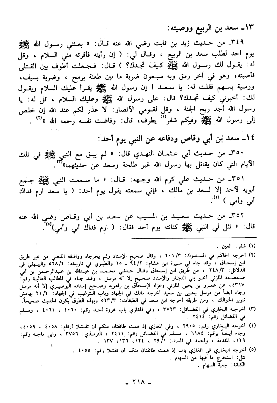 350 - من حديث أبي عثمان النهدي قال: "لم يبق مع النبي - صلى الله عليه وسلم - في تلك الأيام التي كان يقاتل بها رسول الله غير طلحة وسعد عن حديثهما" (¬3).