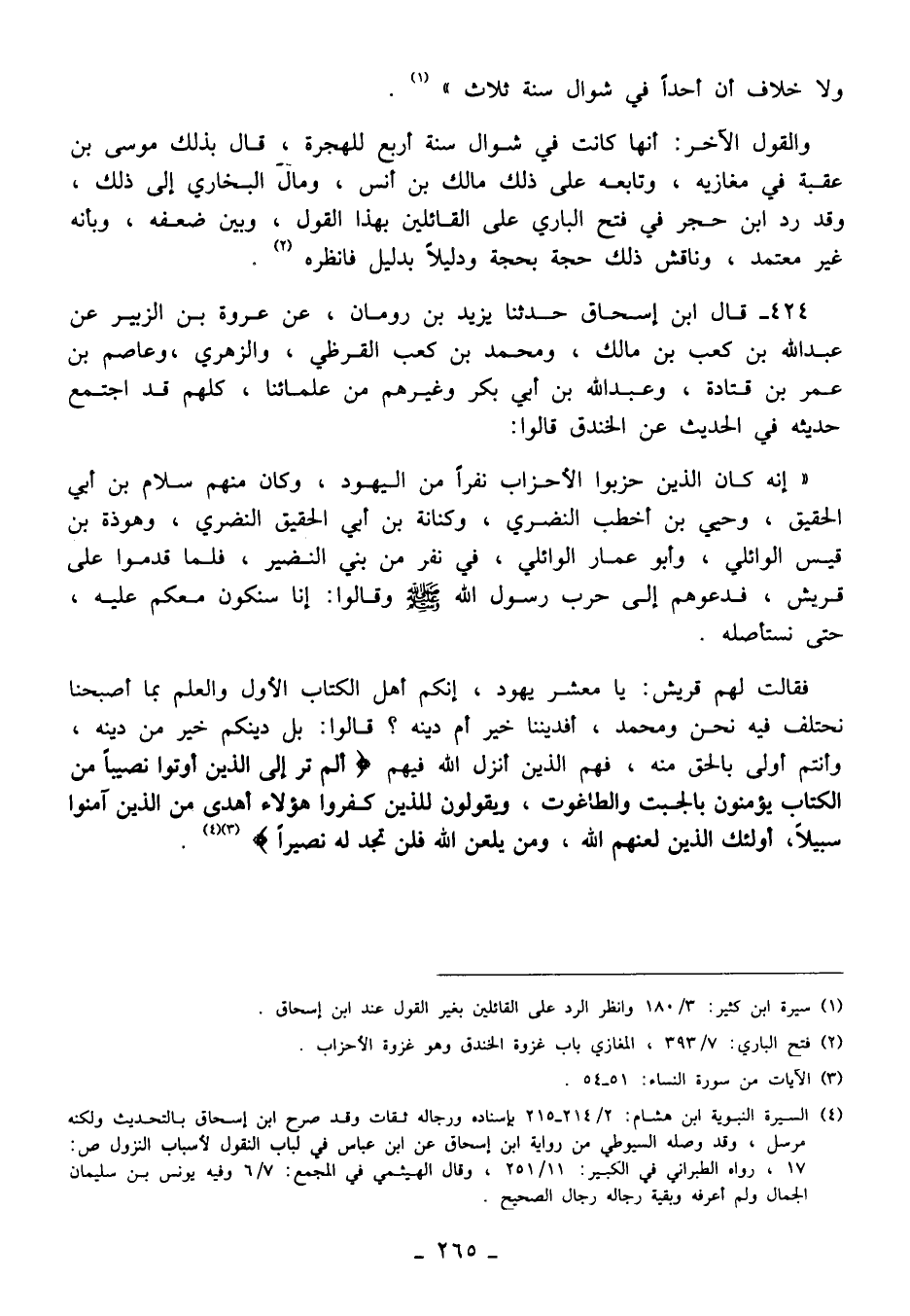(¬1) سيرة ابن كثير: 3/ 180 وانظر الرد على القائلين بغير القول عند ابن إسحاق.