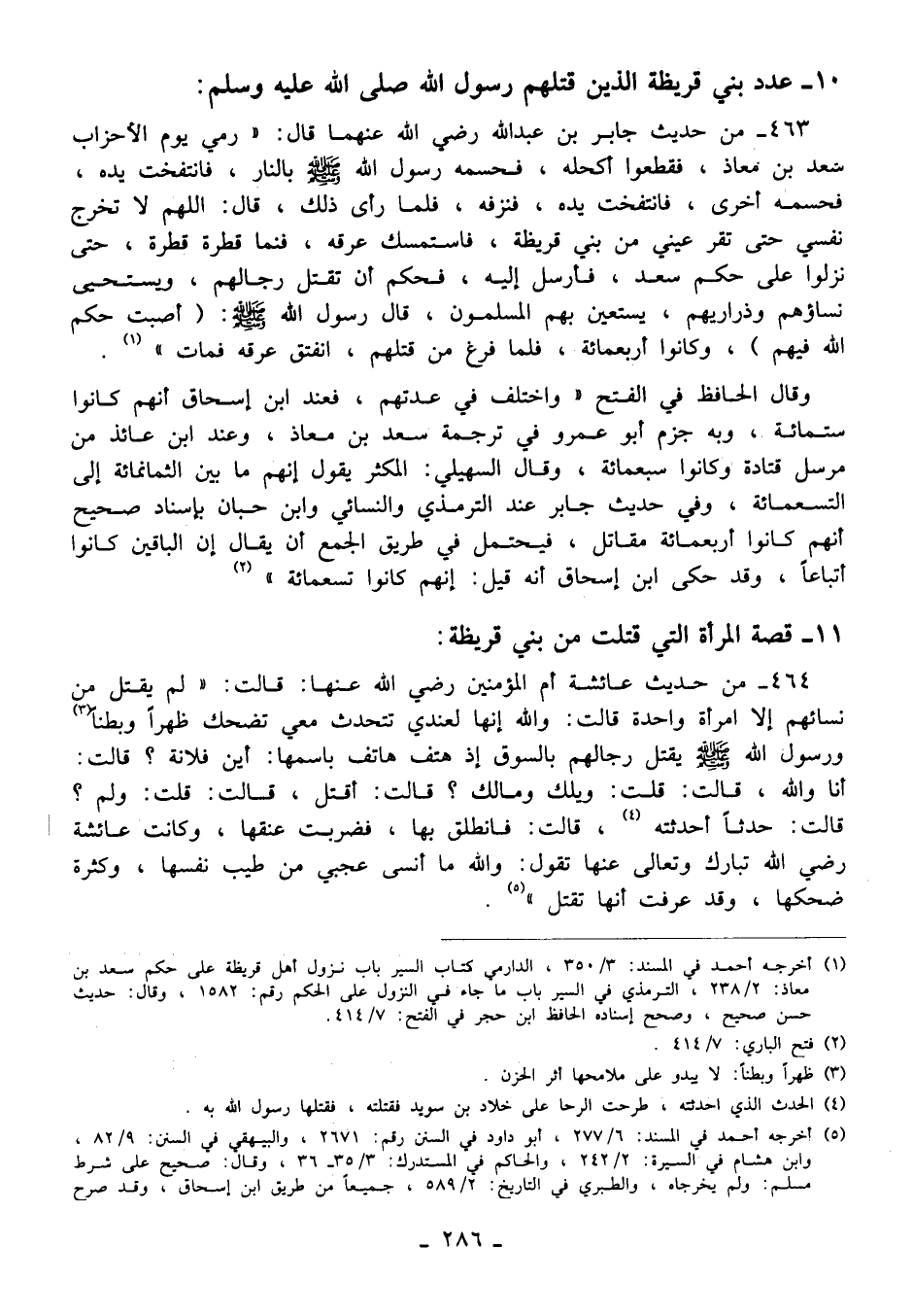 10 - عدد بني قريظة الذين قتلهم رسول الله صلى الله عليه وسلم:
