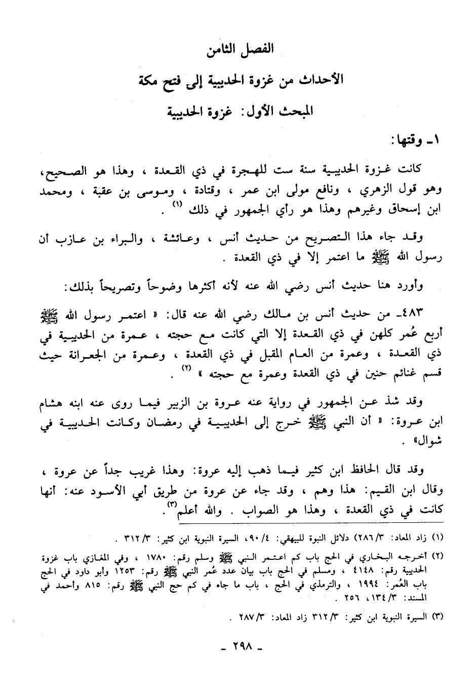 (¬3) السيرة النبوية ابن كثير: 3/ 312 زاد المعاد: 3/ 287.
