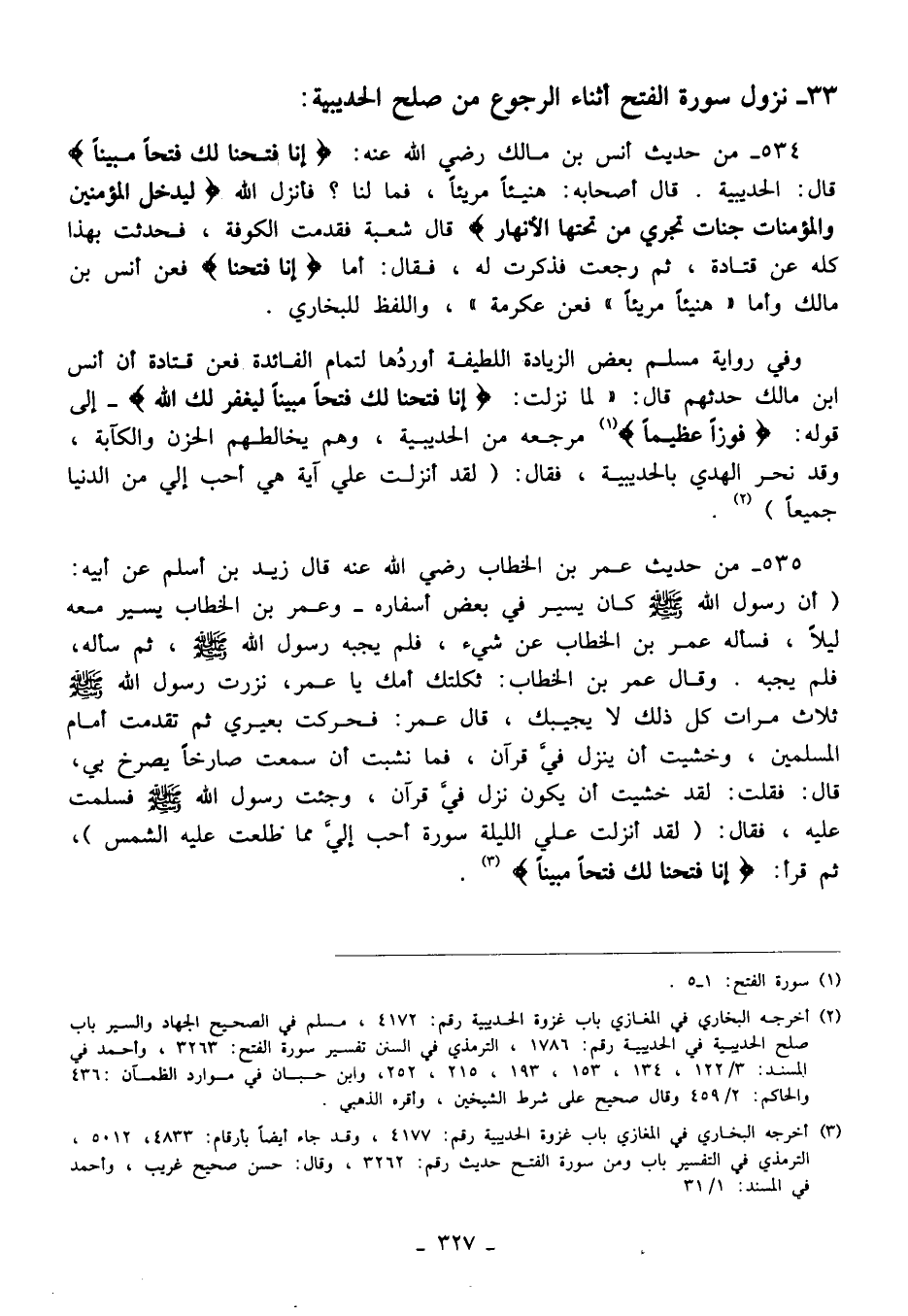 33 - نزول سورة الفتح أثناء الرجوع من صلح الحديبية: