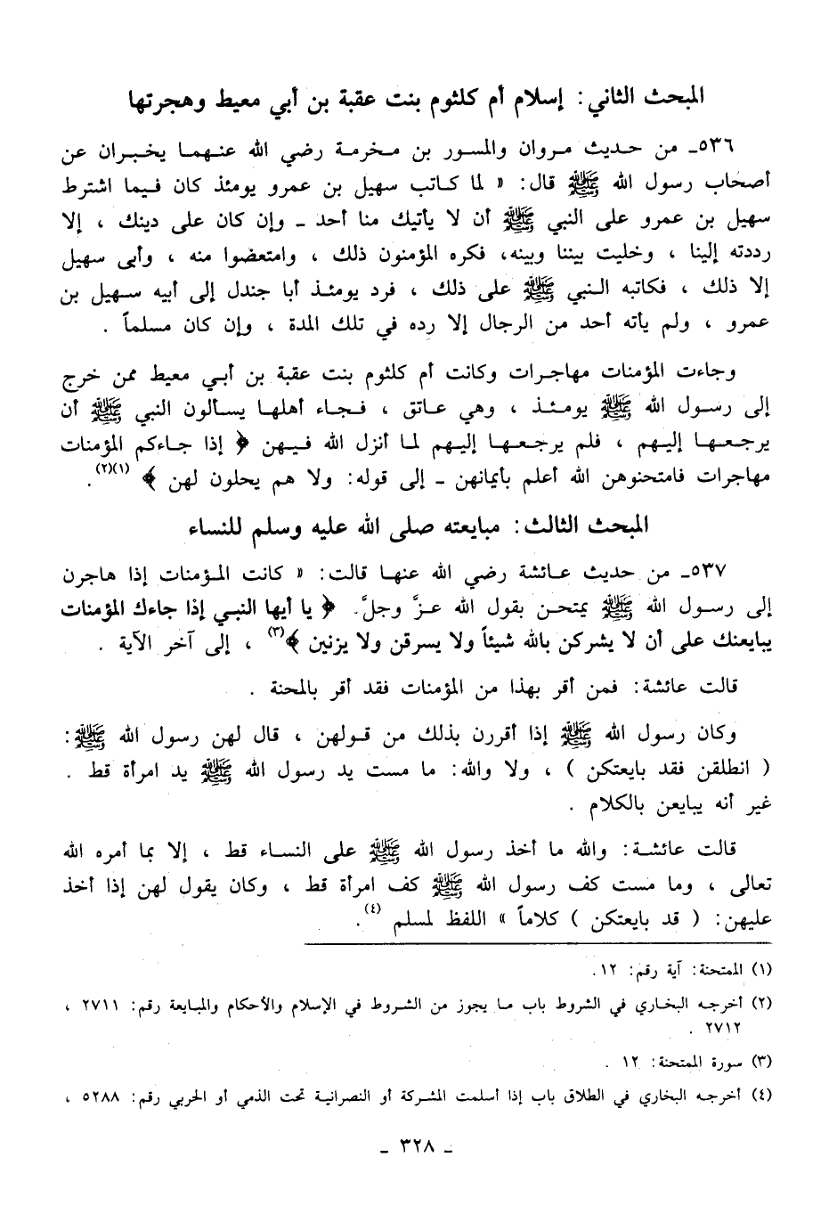 537 - من حديث عائشة رضي الله عنها قالت: "كانت المؤمنات إذا هاجرن إلى رسول الله - صلى الله عليه وسلم - يمتحن يقول الله عَزَّ وَجَلَّ. {يَاأَيُّهَا النَّبِيُّ إِذَا جَاءَكَ الْمُؤْمِنَاتُ يُبَايِعْنَكَ عَلَى أَنْ لَا يُشْرِكْنَ بِاللَّهِ شَيْئًا وَلَا يَسْرِقْنَ وَلَا يَزْنِينَ} (¬3)، إلى آخر الآية.