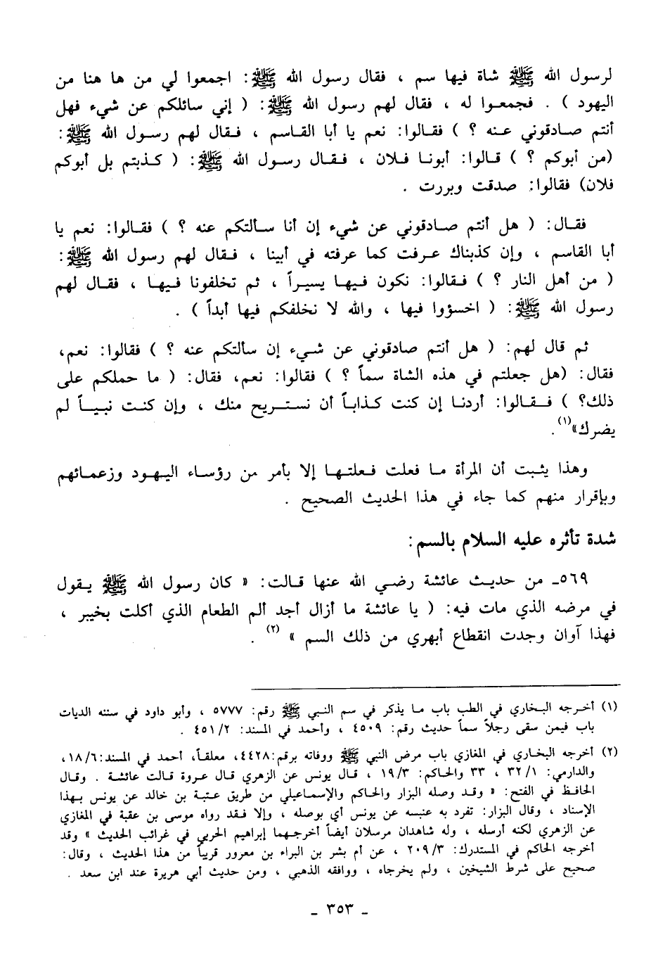 (¬2) أخرجه البخاري في المغازي باب مرض النبي - صلى الله عليه وسلم - ووفاته برقم: 4428، معلقًا، أحمد في المسند: 6/ 18، والدارمي: 1/ 32، 33 والحاكم: 3/ 19، قال يونس عن الزهري قال عروة قالت عائشة. وقال الحافظ في الفتح: "وقد وصله البزار والحاكم والإسماعيلي من طريق عتبة بن خالد عن يونس بهذا الإسناد، وقال البزار: تفرد به عنبسة عن يونس أي بوصله، وإلا فقد رواه موسى بن عقبة في المغازي عن الزهري لكنه أرسله، وله شاهدان مرسلان أيضًا أخرجهما إبراهيم الحربي في غرائب الحديث" وقد أخرجه الحاكم في المستدرك: 3/ 209، عن أم بشر بن البراء بن معرور قريبًا من هذا الحديث، وقال. صحيح على شرط الشيخين، ولم يخرجاه، ووافقه الذهبي، ومن حديث أبي هريرة عند ابن سعد.