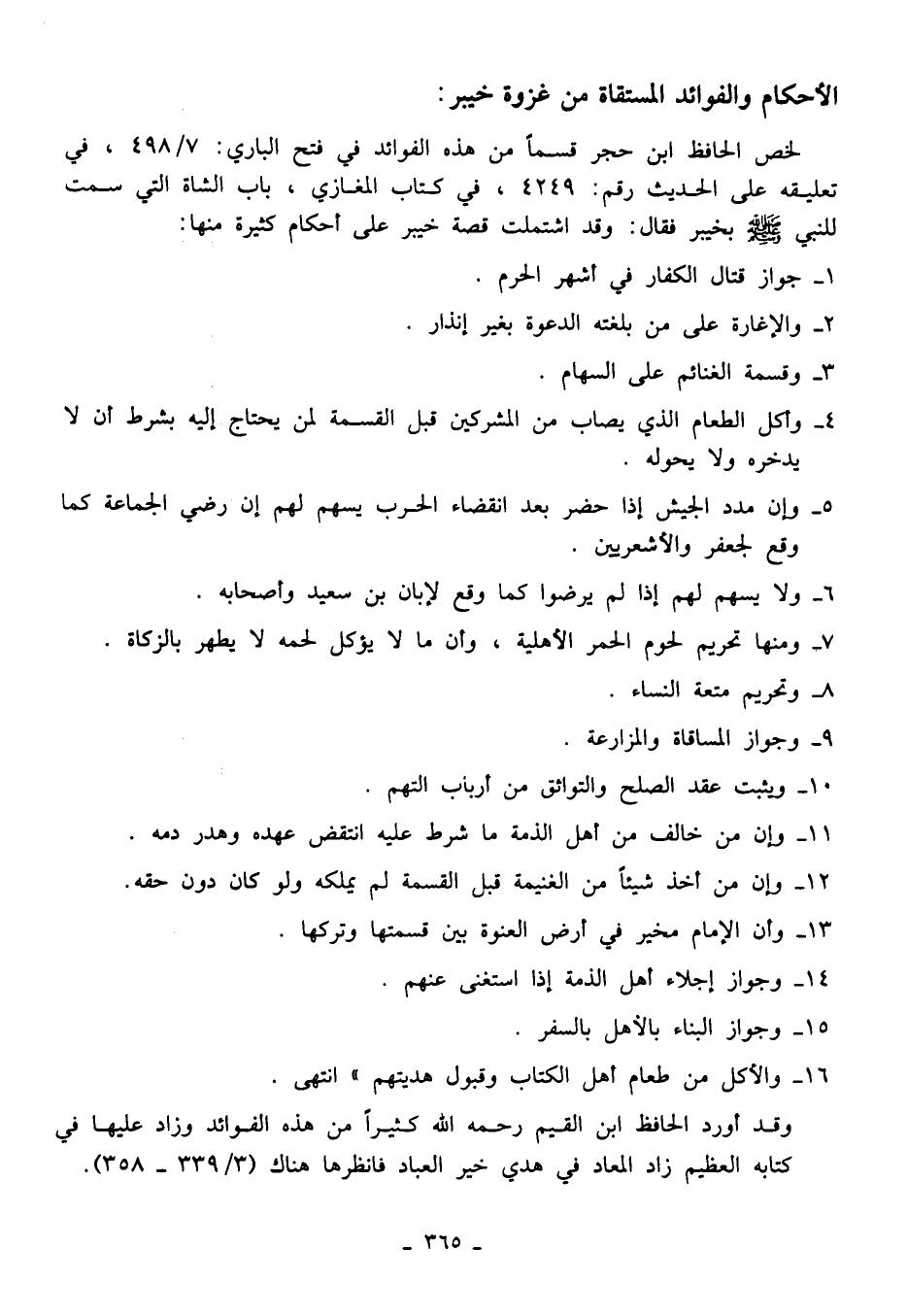 لخص الحافظ ابن حجر قسمًا من هذه الفوائد في فتح الباري: 7/ 498، في تعليقه على الحديث رقم: 4249، في كتاب المغازي، باب الشاة التي سمت للنبي - صلى الله عليه وسلم - بخيبر فقال: وقد اشتملت قصة خيبر على أحكام كثيرة منها: