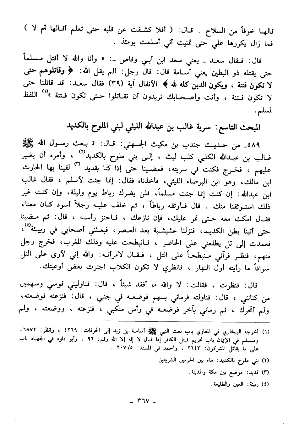 المبحث التاسع: سرية غالب بن عبد الله الليثي لبني الملوح بالكديد