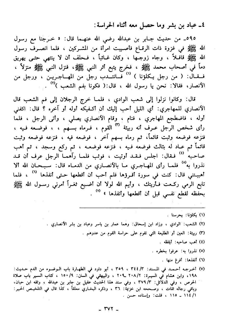 4 - عباد بن بشر وما حصل معه أثناء الحراسة: