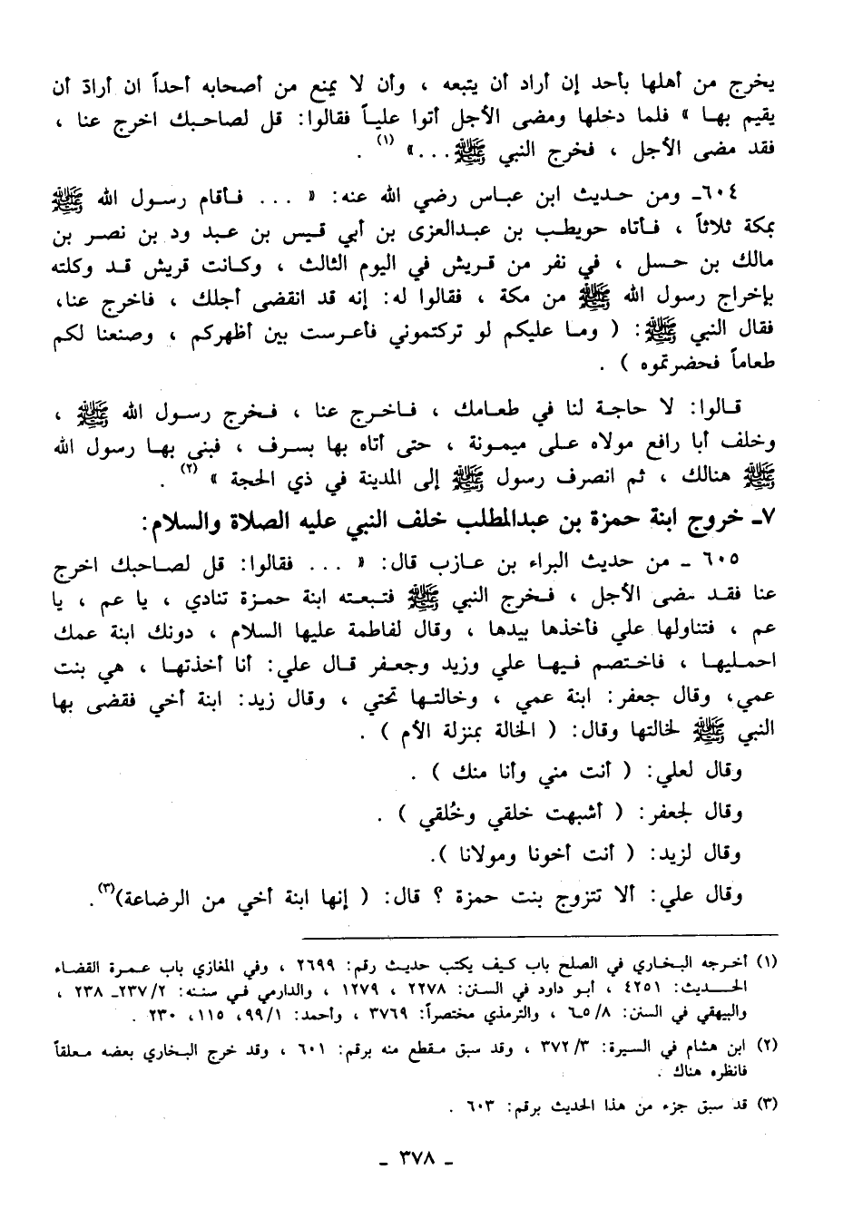 7 - خروج ابنة حمزة بن عبد المطلب خلف النبي عليه الصلاة والسلام:
