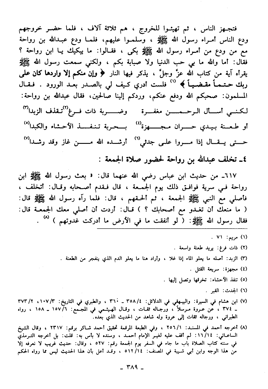 4 - تخلف عبد الله بن رواحة لحضور صلاة الجمعة: