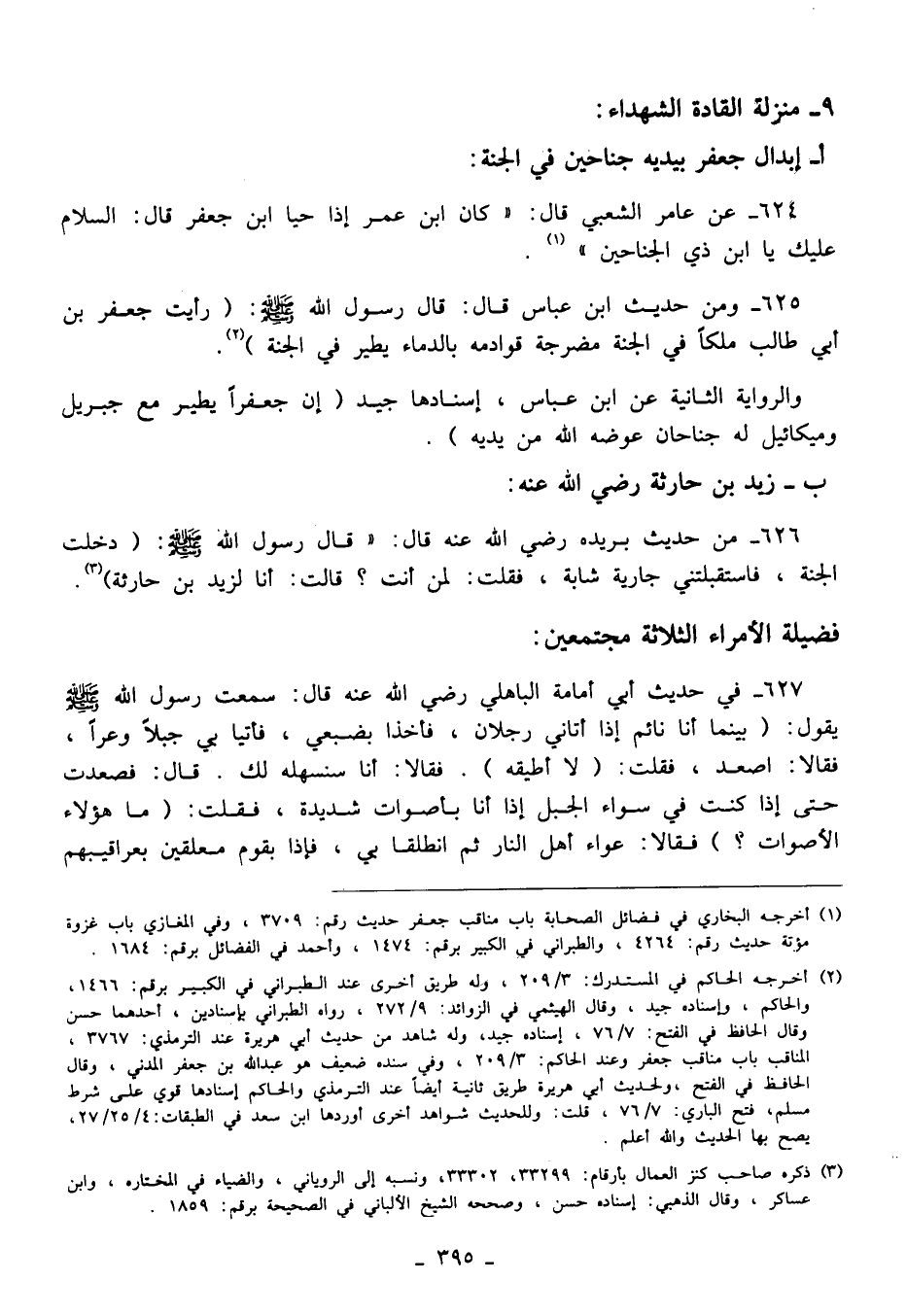 (¬1) أخرجه البخاري في فضائل الصحابة باب مناقب جعفر حديث رقم: 3709، وفي المغازي باب غزوة مؤتة حديث رقم: 4264، والطبراني في الكبير برقم: 1474، وأحمد في الفضائل برقم: 1684.