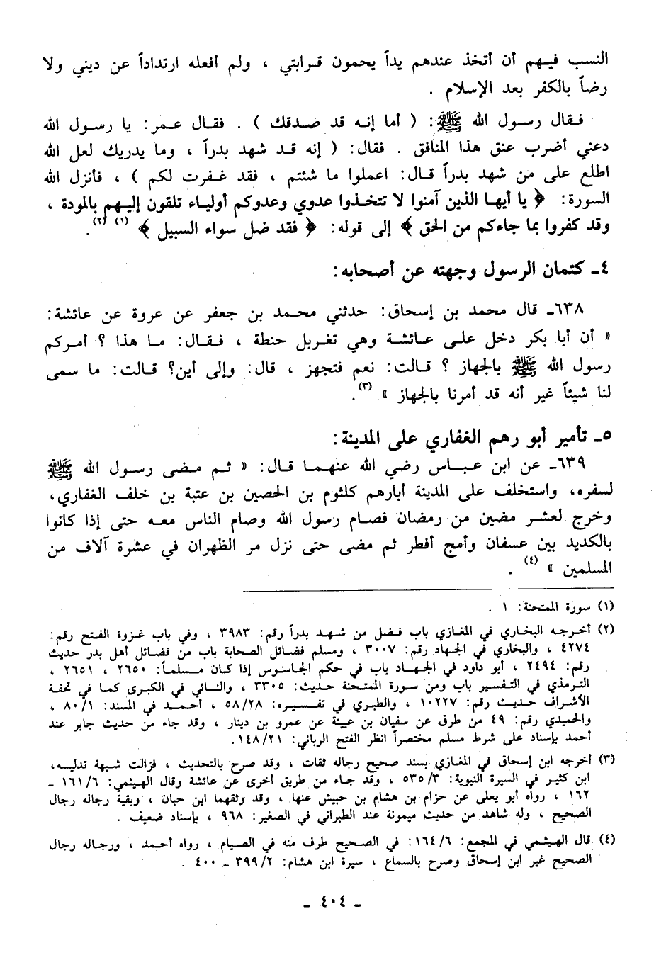 (¬4) قال الهيثمي في المجمع: 6/ 164: في الصحيح طرف منه في الصيام، رواه أحمد، ورجاله رجال الصحيح غير ابن إسحاق وصرح بالسماع، سيرة ابن هشام: 2/ 399 - 400.