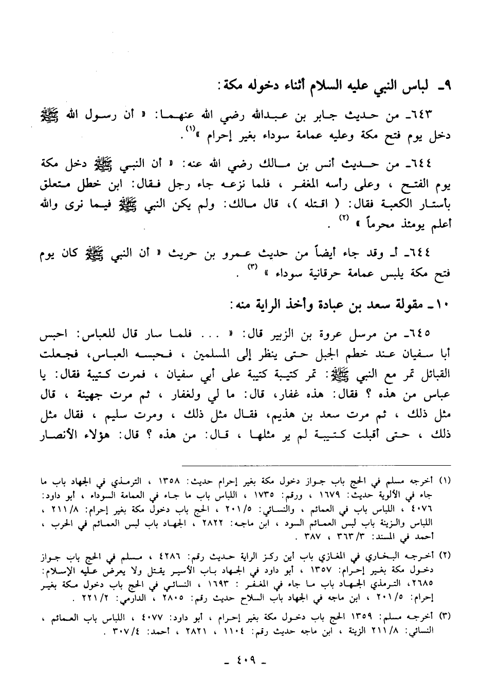 643 - من حديث جابر بن عبد الله رضي الله عنهما: "أن رسول الله - صلى الله عليه وسلم - دخل يوم فتح مكة وعليه عمامة سوداء بغير إحرام" (¬1).