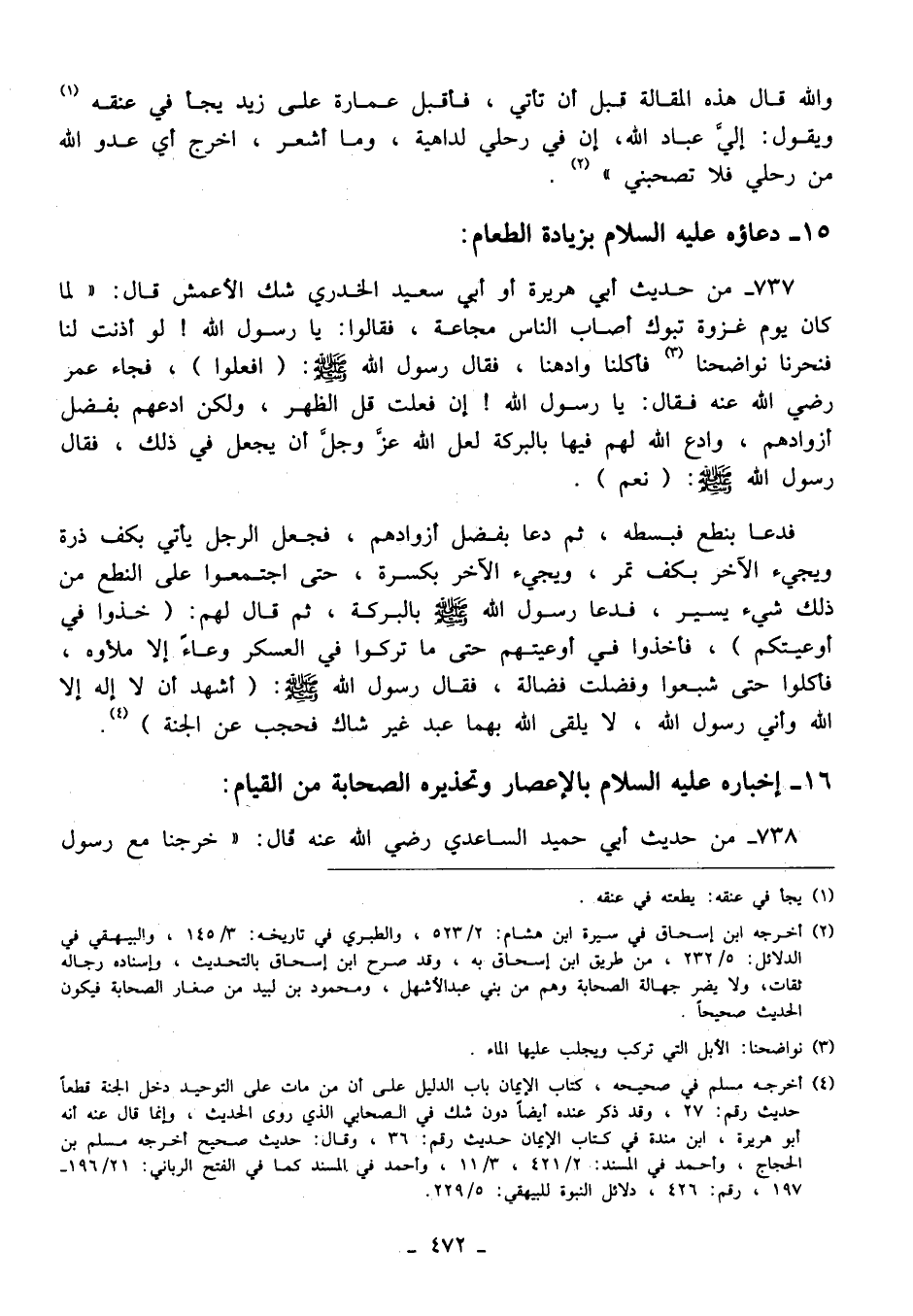 737 - من حديث أبي هريرة أو أبي سعيد الخدري شك الأعمش قال: "لما كان يوم غزوة تبوك أصاب الناس مجاعة، فقالوا: يا رسول الله! لو أذنت لنا فنحرنا نواضحنا (¬3) فكلنا وادهنا، فقال رسول الله - صلى الله عليه وسلم - (افعلوا)، فجاء عمر رضي الله عنه فقال: يا رسول الله! إن فعلت قبل الظهر، ولكن ادعهم بفضل أزوادهم، وادع الله لهم فيها بالبركة لعل الله عَزَّ وَجَلَّ أن يجعل في ذلك، فقال رسول الله - صلى الله عليه وسلم -: (نعم).