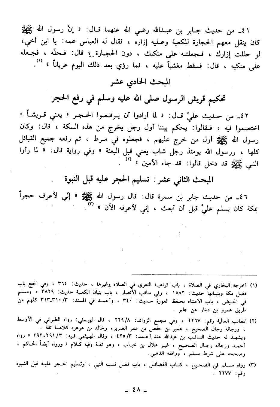 (¬3) رواه مسلم في الصحيح، كتاب الفضائل، باب فضل نسب النبي، وتسليم الحجر عليه قبل النبوة رقم: 2277.