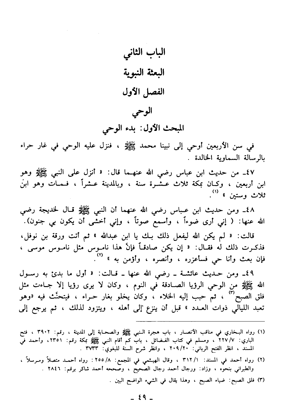 48 - ومن حديث ابن عباس رضي الله عنهما أن النبي - صلى الله عليه وسلم - قال لخديجة رضي الله عنها: (إني أرى ضوءًا، وأسمع صوتًا، وإني أخشى أن يكون بي جنون).