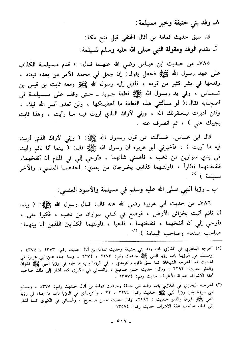8 - وفد بني حنيفة وخبر مسيلمة: