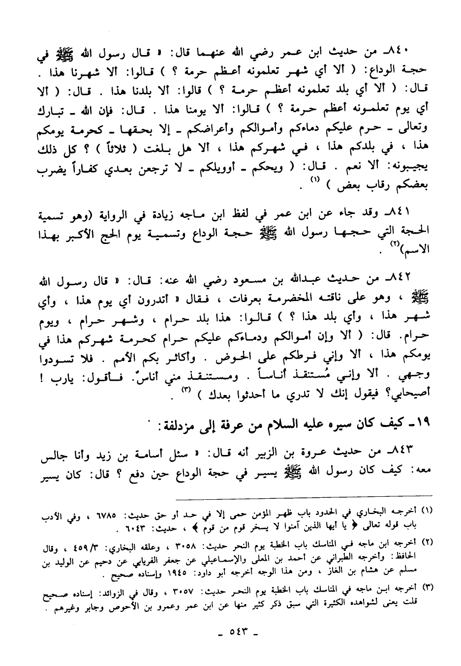 (¬3) أخرجه ابن ماجة في المناسك باب الخطبة يوم النحر حديث: 3057، وقال في الزوائد: إسناده صحيح قلت يعني لشواهده الكثيرة التي سبق ذكر كثير منها عن ابن عمر وعمرو بن الأحوص وجابر وغيرهم.