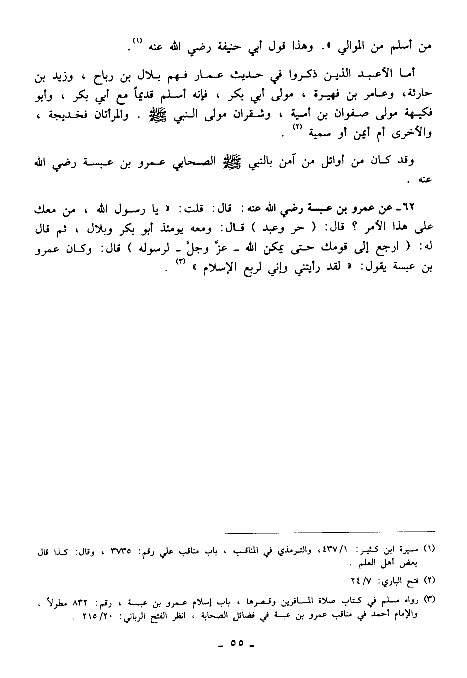 (¬3) رواه مسلم في كتاب صلاة المسافرين وقصرها، باب إسلام عمرو بن عسة، رقم: 832 مطولًا، والإمام أحمد في مناقب عمرو بن عبسة في "فضائل الصحابة" انظر الفتح الرباني: 20/ 215.