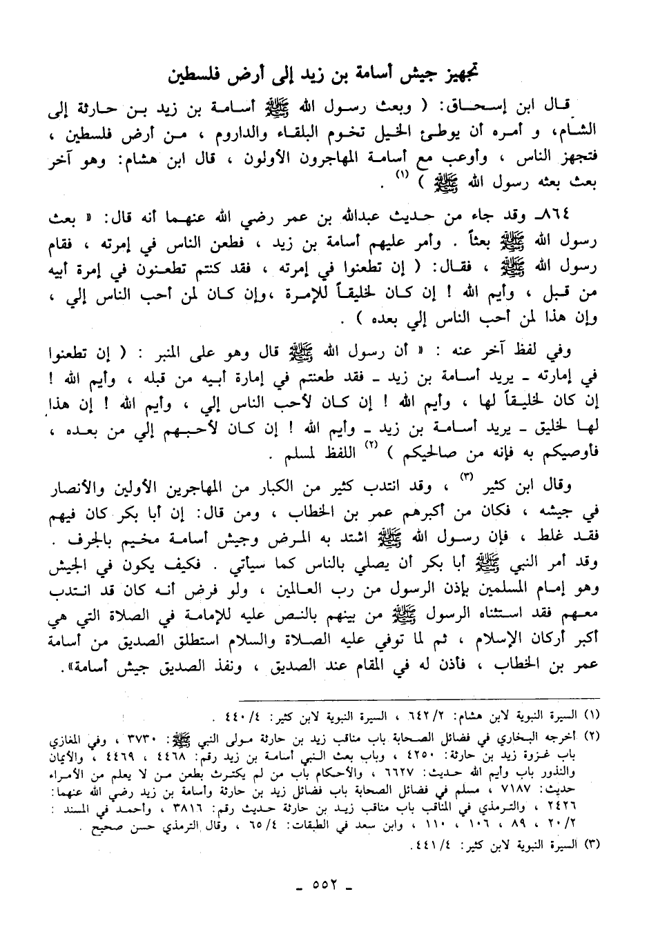 864 - وقد جاء من حديث عبد الله بن عمر رضي الله عنهما أنه قال: (بعث رسول الله - صلى الله عليه وسلم - بعثًا. وأمر عليهم أسامة بن زيد، فطعن الناس في إمرته، فقام رسول الله - صلى الله عليه وسلم -، فقال: "إن تطعنوا في إمرته، فقد كنتم تطعنون في إمرة أبيه من قبل، وأيم الله! إن كان لخليقًا للإمرة، وإن كان لمن أحب الناس إلي، وإن هذا لمن أحب الناس إلي بعده).