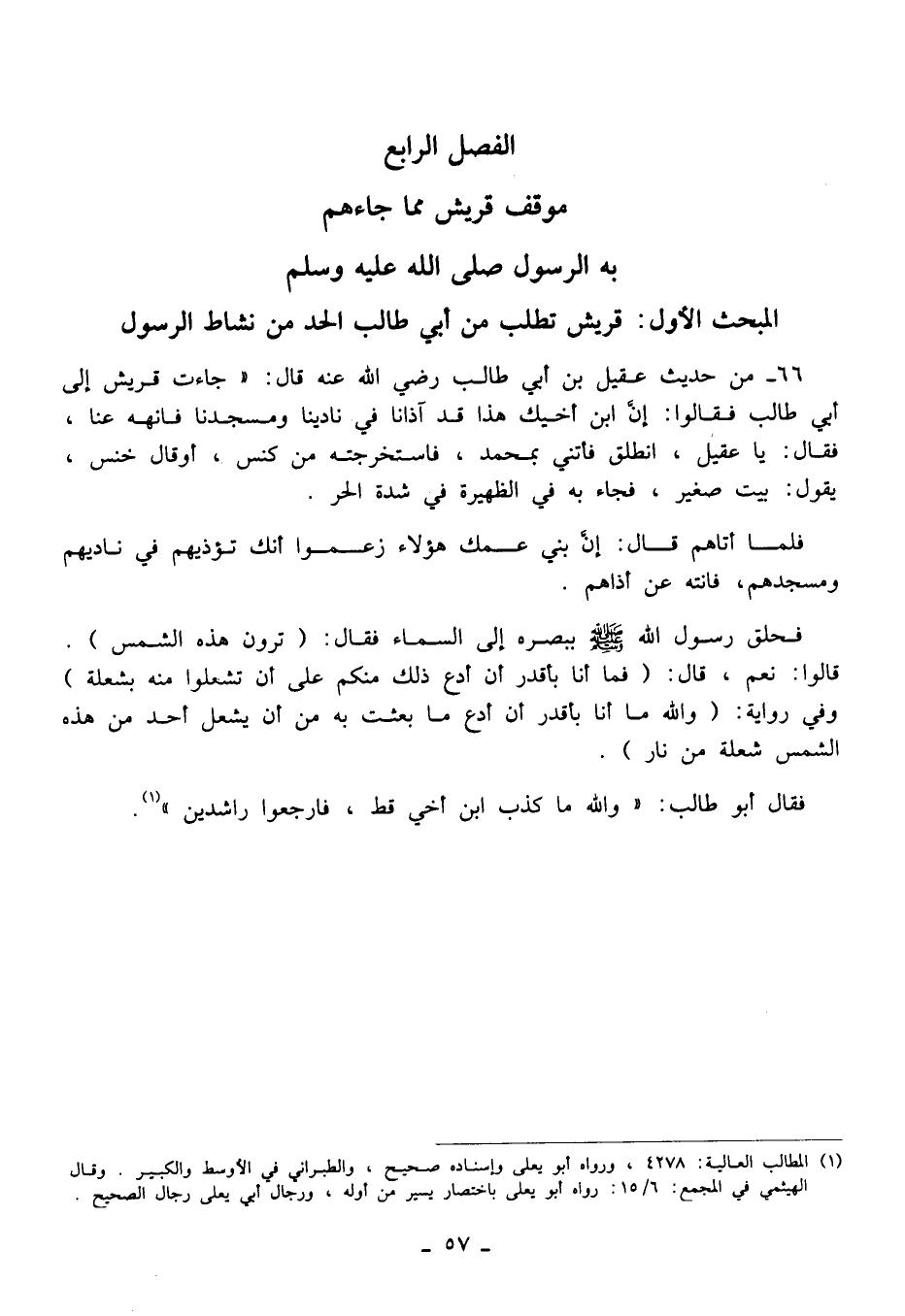 المبحث الأول: قريش تطلب من أبي طالب الحد من نشاط الرسول