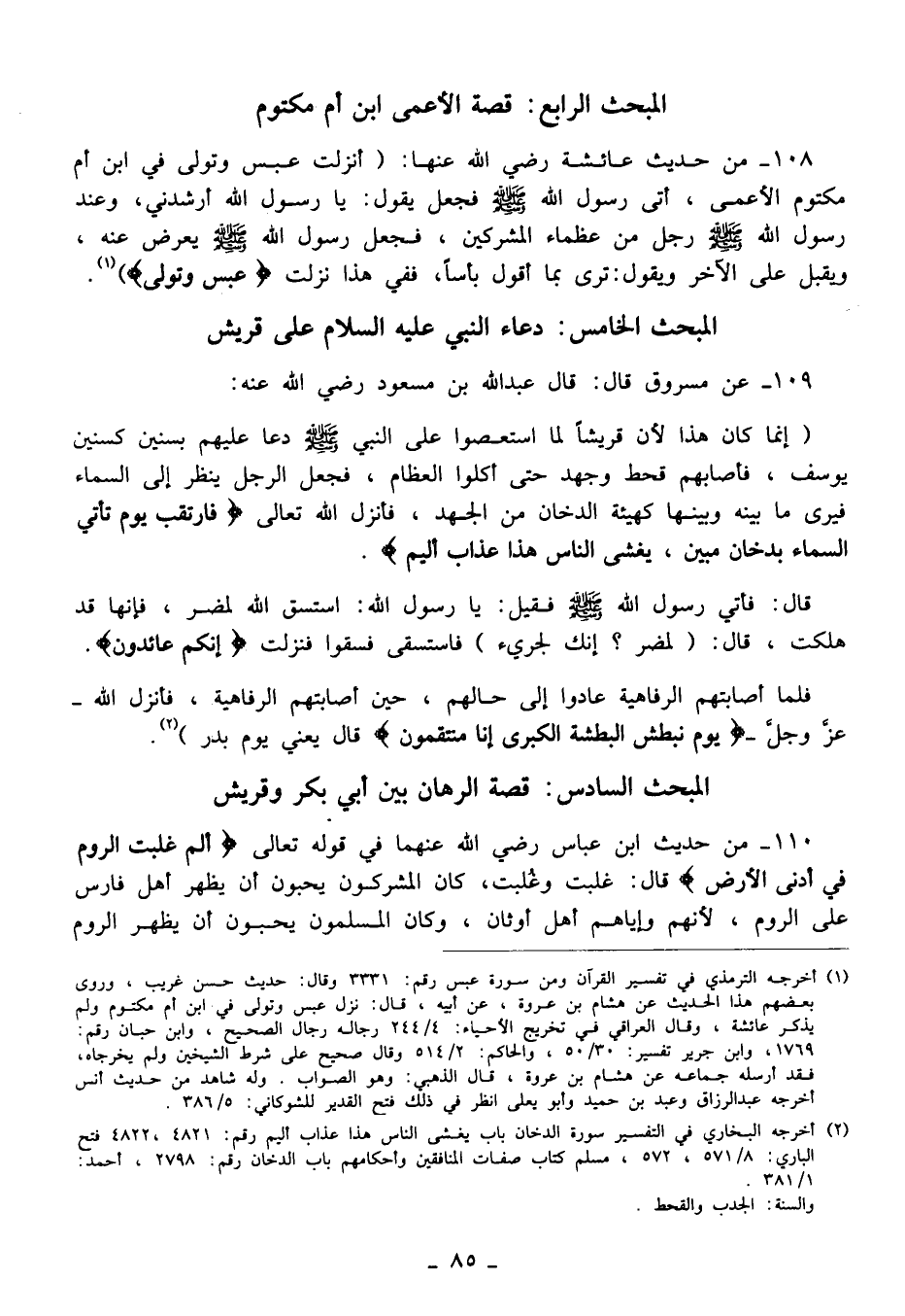 110 - من حديث ابن عباس - رضي الله عنهما - في قوله تعالى {الم (1) غُلِبَتِ الرُّومُ (2) فِي أَدْنَى الْأَرْضِ} قال: غلبت وغُلبت، كان المشركون يحبون أن يظهر أهل فارس على الروم؛ لأنهم وإياهم أهل أوثان، وكان المسلمون يحبون أن يظهر الروم