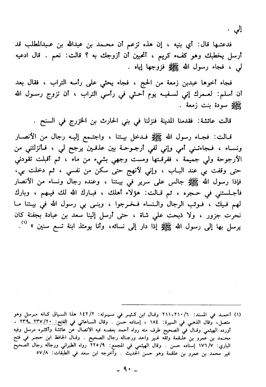 (¬1) أحمد في المسند: 6/ 210،211 وقال ابن كثير في سيرته: 2/ 142 هذا السياق كأنه مرسل وهو متصل، وقال الذهبي في السيرة: 184، إسناده حسن. وقال الساعاتي في الفتح:20/ 237 - 239، أورده الهيثمي وقال في الصحيح طرف منه رواه أحمد بعضه فيه الاتصال عن عائشة وأكثره مرسل وفيه محمَّد بن عمرو بن علقمة وثقه غير واحد ورجاله رجال الصحيح. وقال الحافظ ابن حجر في فتح الباري: 7/ 176 إسناده حسن. وقال الهيثمي في المجمع: 9/ 225 رواه الطبراني ورجاله رجال الصحيح غير محمَّد بن عمرو بن علقمة وهو حسن الحديث. وأخرجه ابن سعد في الطبقات: 8/ 57.