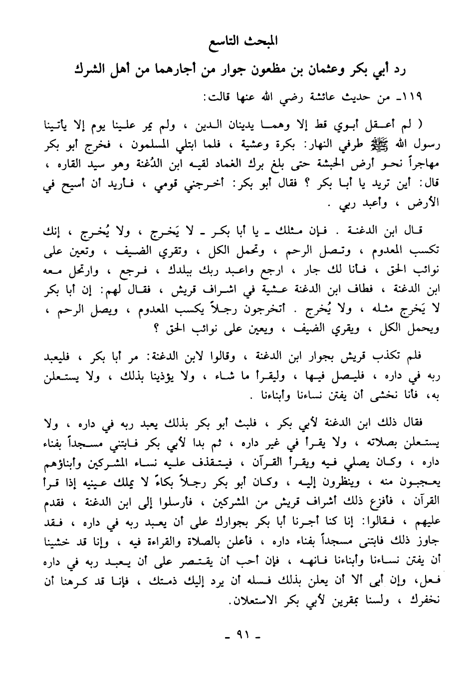 المبحث التاسع: رد أبي بكر وعثمان بن مظعون جوار من أجارهما من أهل الشرك