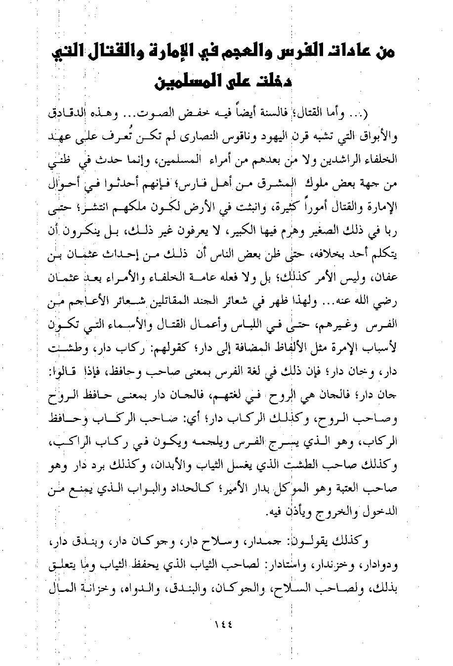 من عادات الفرس والعجم في الإمارة والقتال التي دخلت على المسلمين