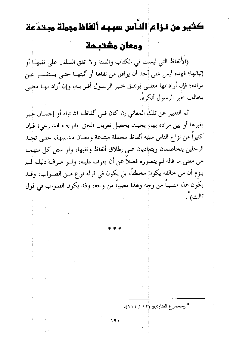 كثير من نزاع النَّاس سببه ألفاظ مجملة مبتدَعة