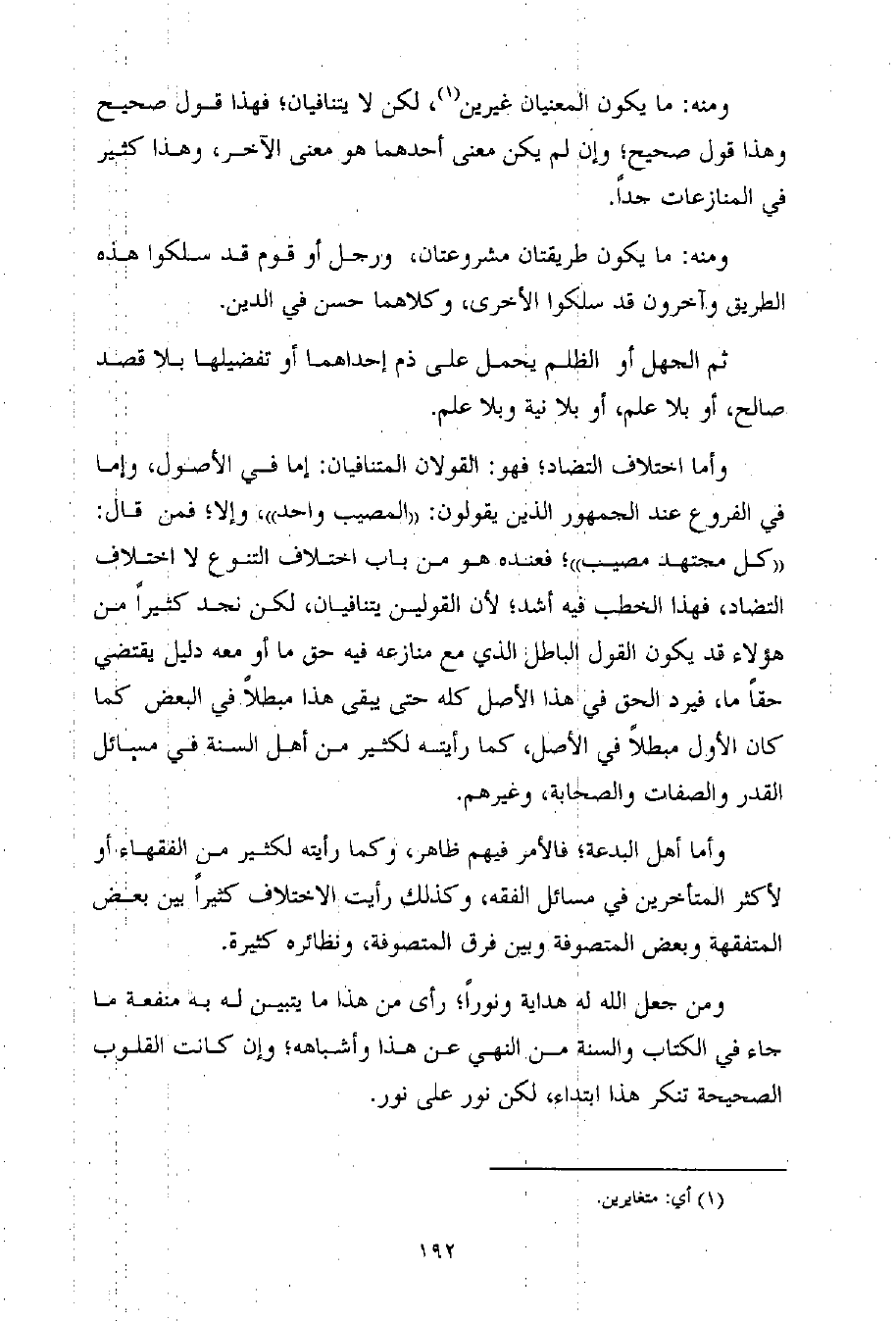 وأما أهل البدعة؛ فالأمر فيهم ظاهر، وكما رأيته لكثير من الفقهاء أو لأكثر المتأخرين في مسائل الفقه، وكذلك رأيت الاختلاف كثيراً بين بعض المتفقهة وبعض المتصوفة وبين فرق المتصوفة، ونظائره كثيرة.