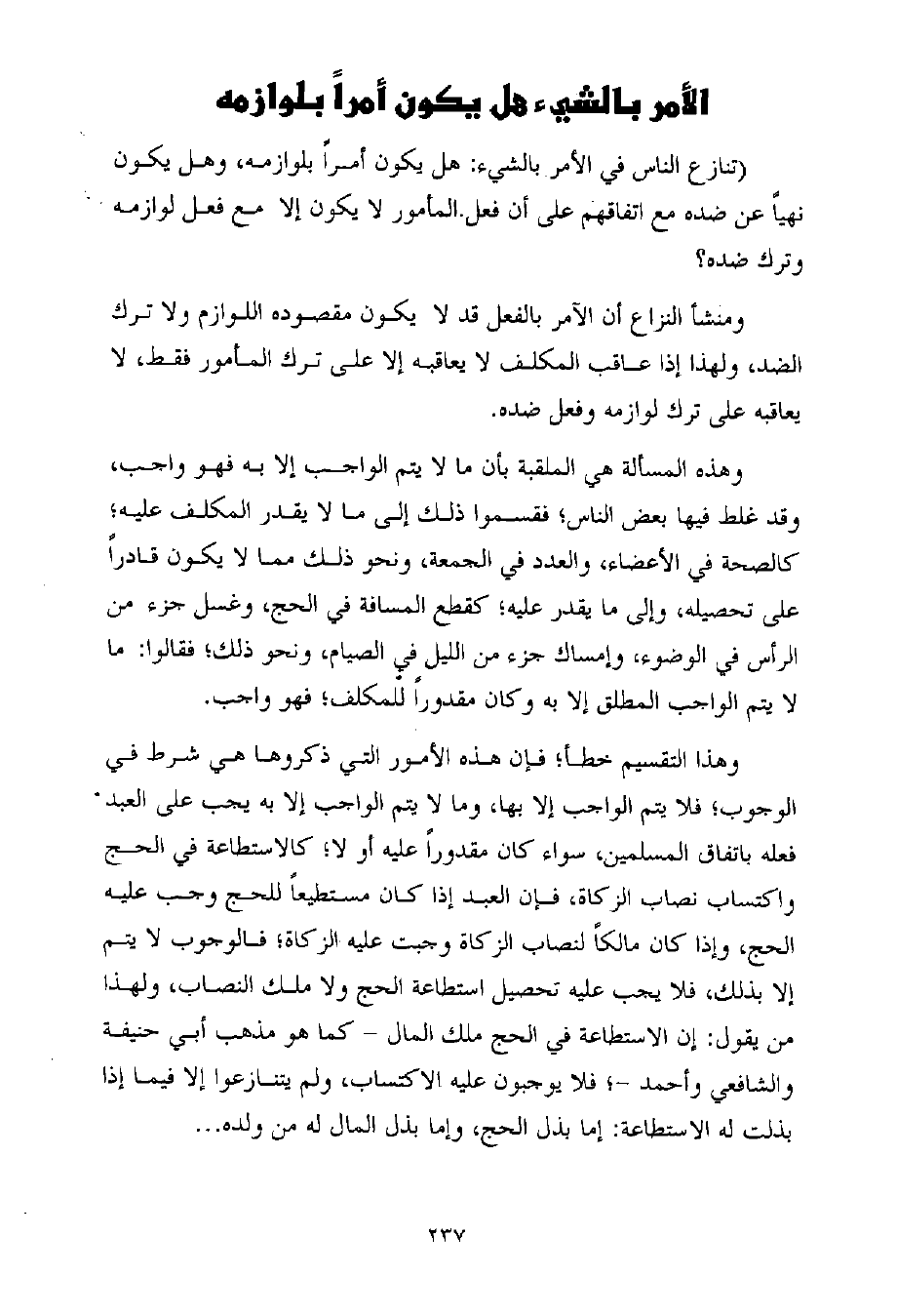 الأمر بالشيء هل يكون أمراً بلوازمه
