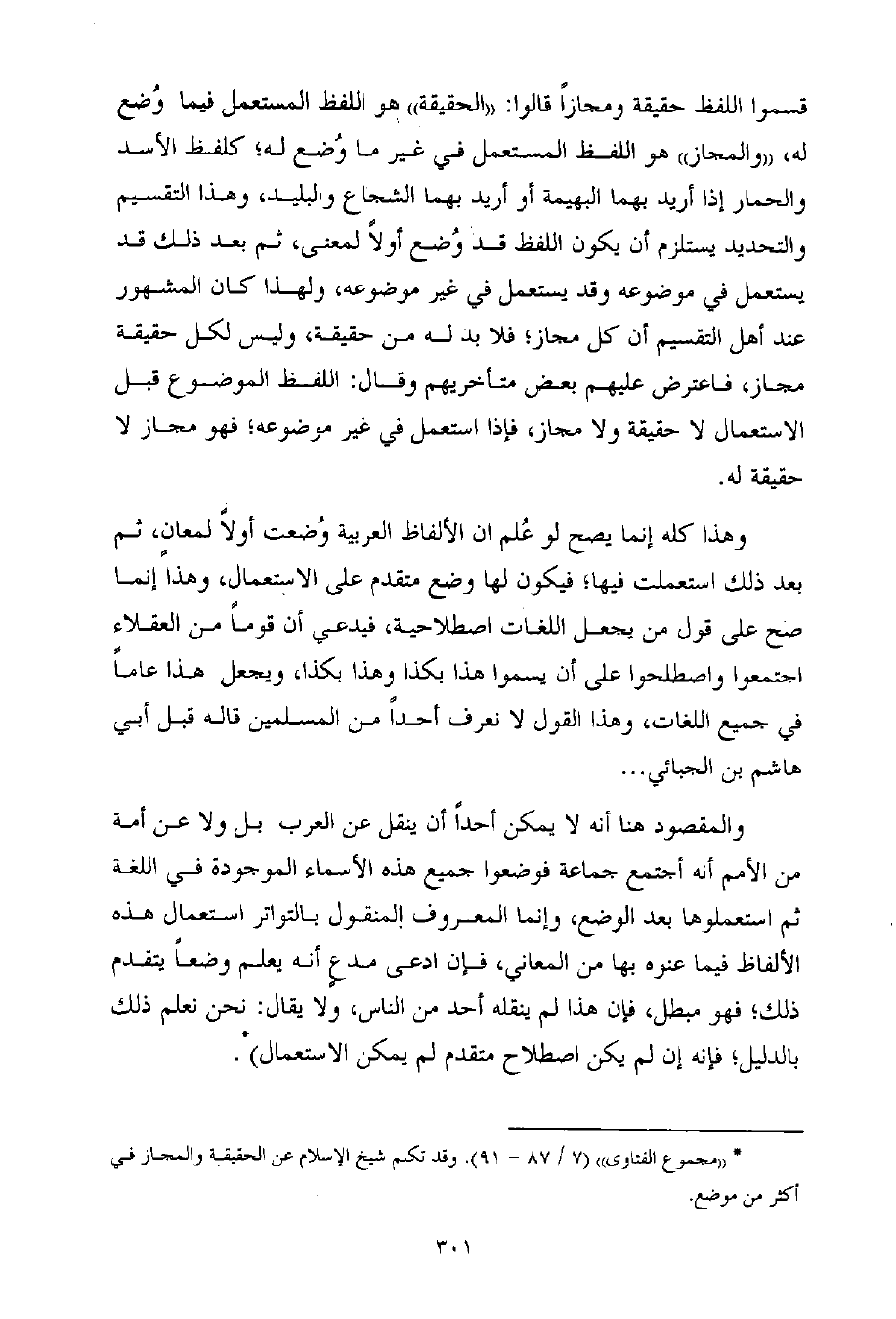 (¬1) * ((مجموع الفتاوى)) (7 / 87 - 91) . وقد تكلم شيخ الإسلام عن الحقيقة والمجاز في أكثر من موضع.