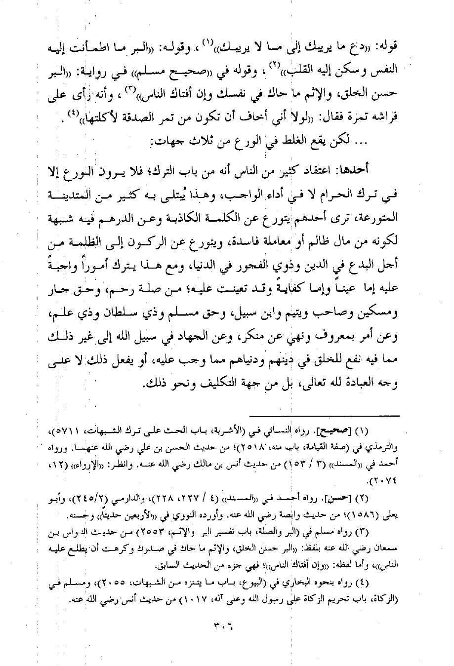 (¬3) رواه مسلم في (البر والصلة، باب تفسير البر والإثم، 2553) من حديث النواس بن سمعان رضي الله عنه بلفظ: ((البر حسن الخلق، والإثم ما حاك في صدرك وكرهت أن يطلع عليه الناس)) ، وأما لفظه: ((وإن أفتاك الناس)) ؛ فهي جزء من الحديث السابق.