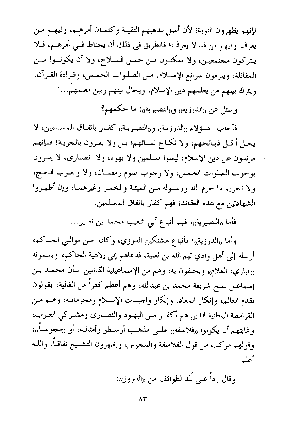 وقال رداً على نُبَذ لطوائف من ((الدروز)) :