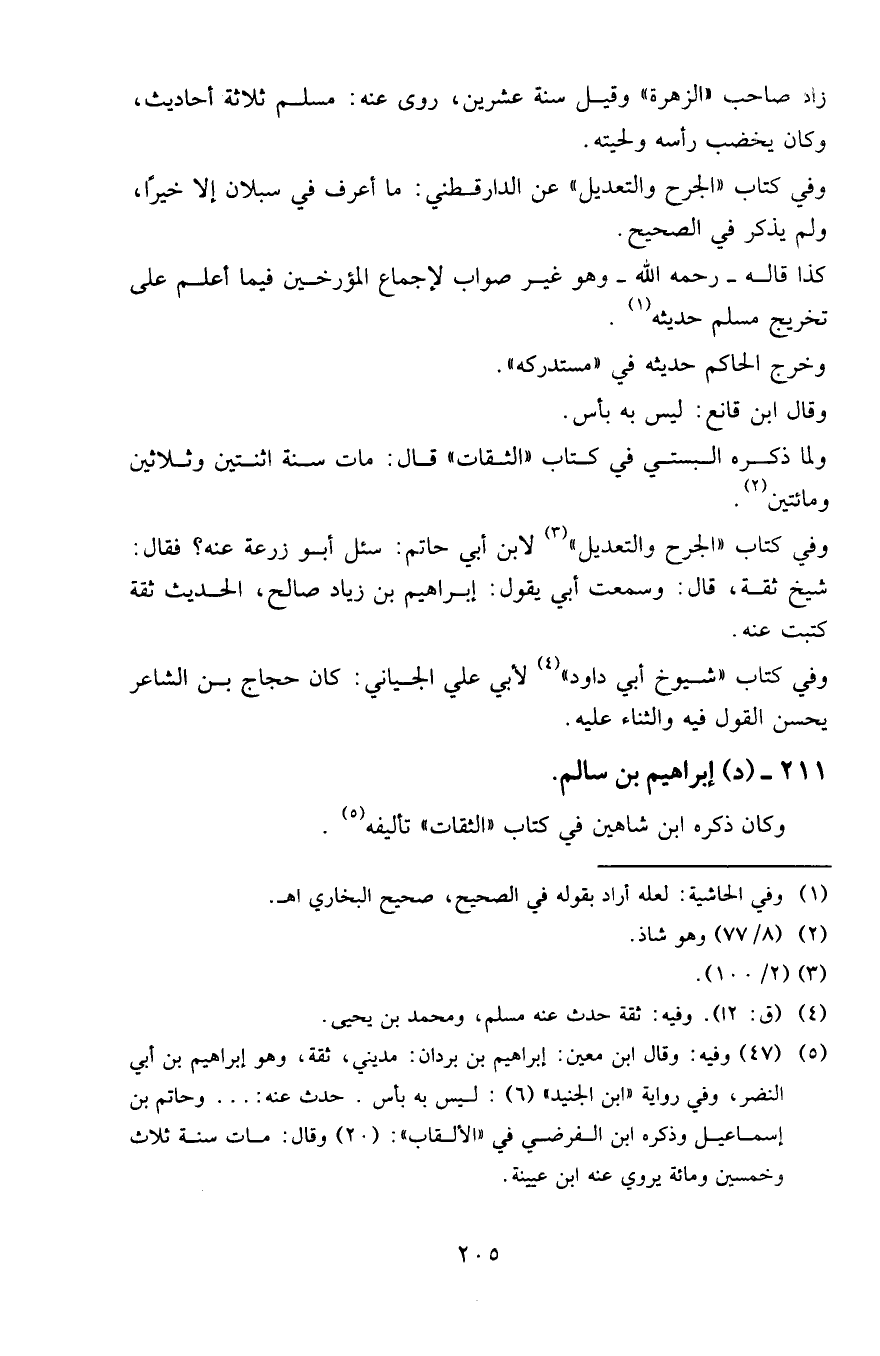 ( 5 ) ( 47 ) وفيه : وقال ابن معين : إبراهيم بن بردان : مديني ، ثقة ، وهو إبراهيم بن أبي