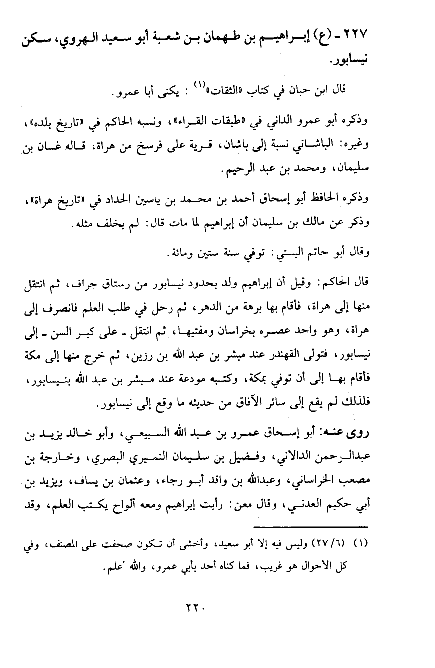 227 - ( ع ) إبراهيم بن طهمان بن شعبة أبو سعيد الهروي ، سكن