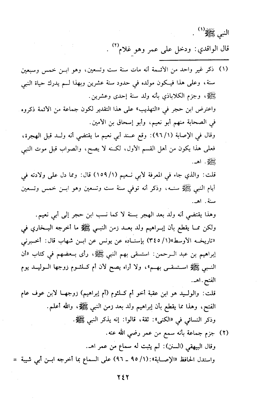 وهذا يقتضي أنه ولد بعد الهجر بسنة لا كما نسب ابن حجر إلى أبي نعيم .