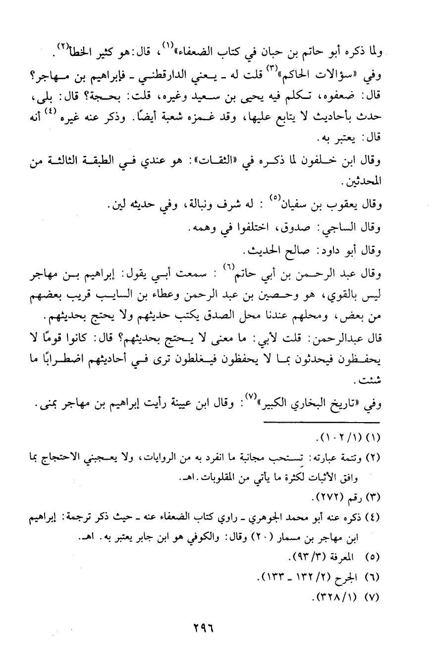 وقال عبد الرحمن بن أبي حاتم ( 6 ) : سمعت أبي يقول : إبراهيم بن مهاجر
