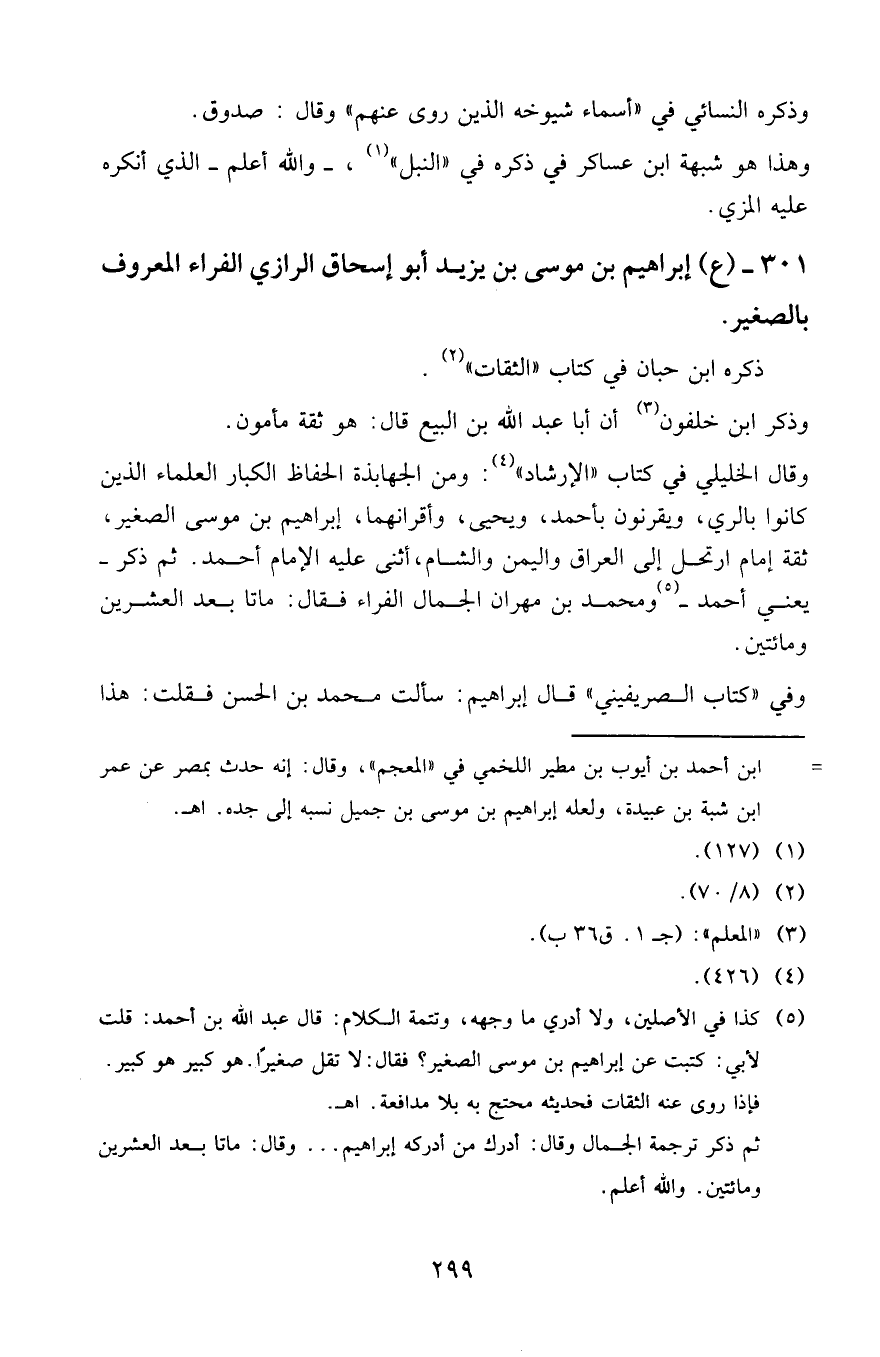 301 - ( ع ) إبراهيم بن موسى بن يزيد أبو إسحاق الرازي الفراء المعروف