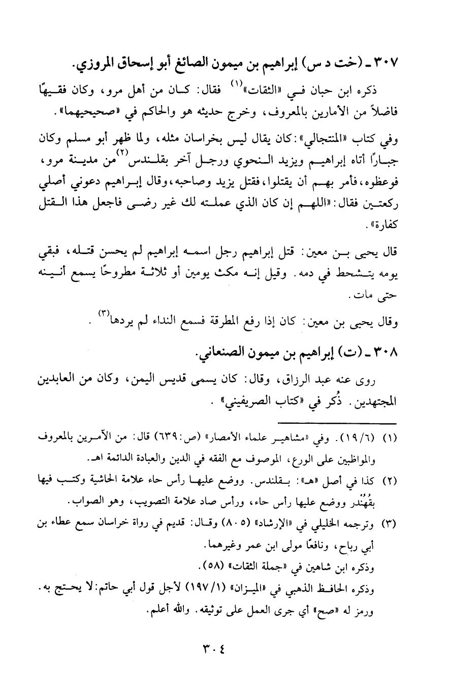 307 - ( خت د س ) إبراهيم بن ميمون الصائغ أبو إسحاق المروزي .